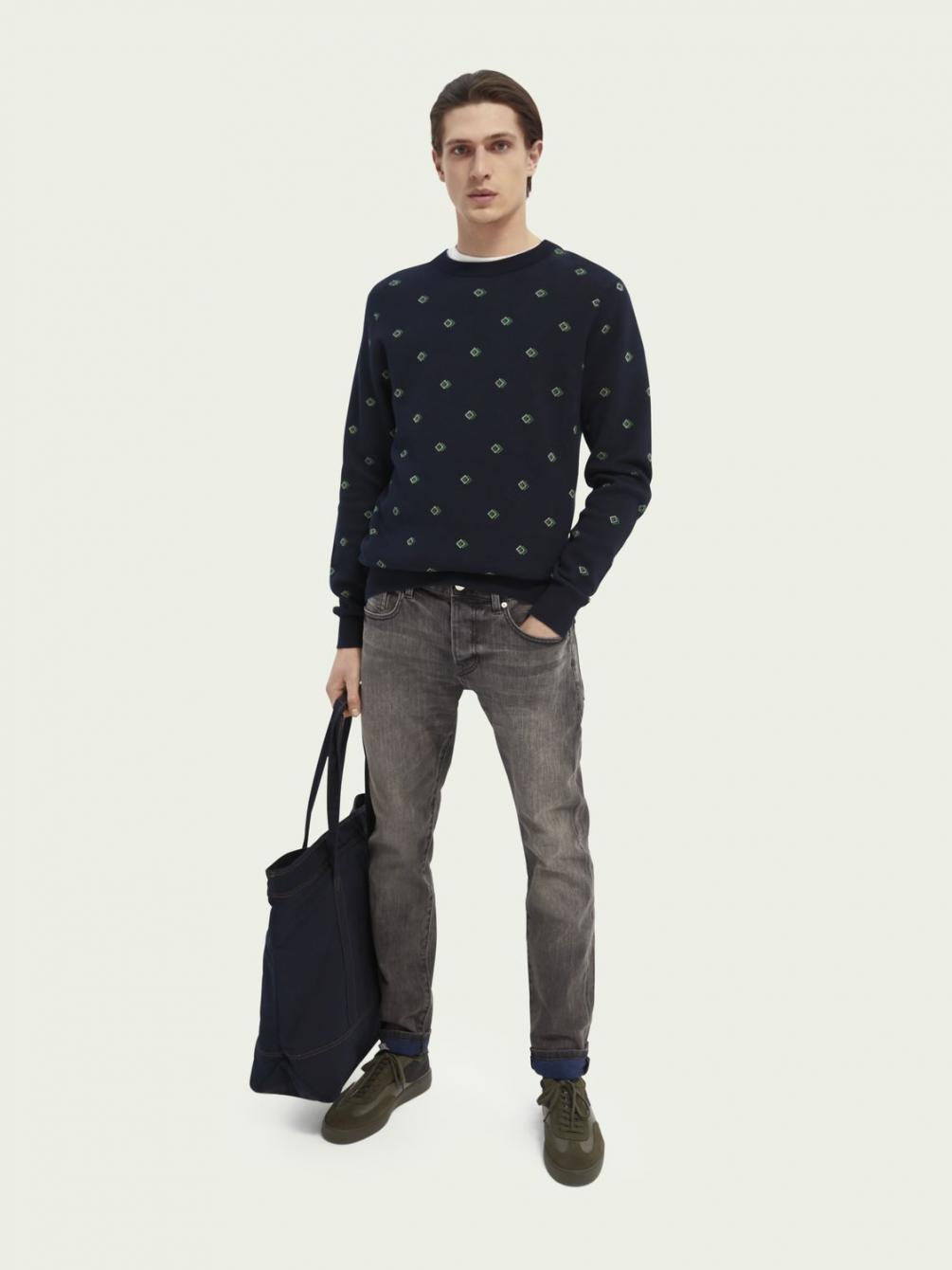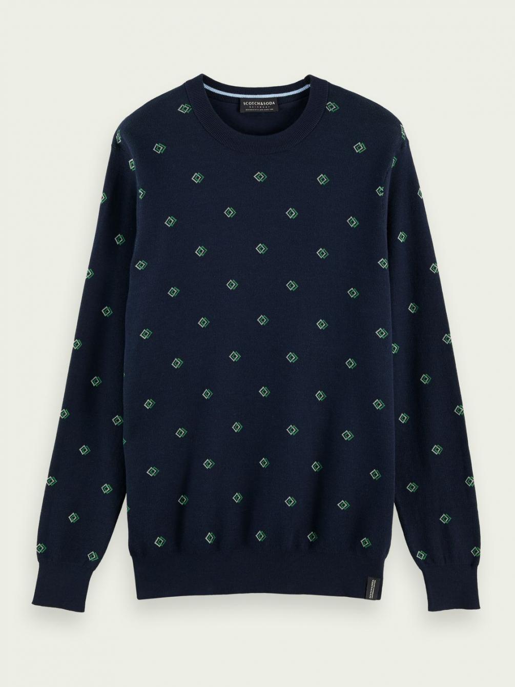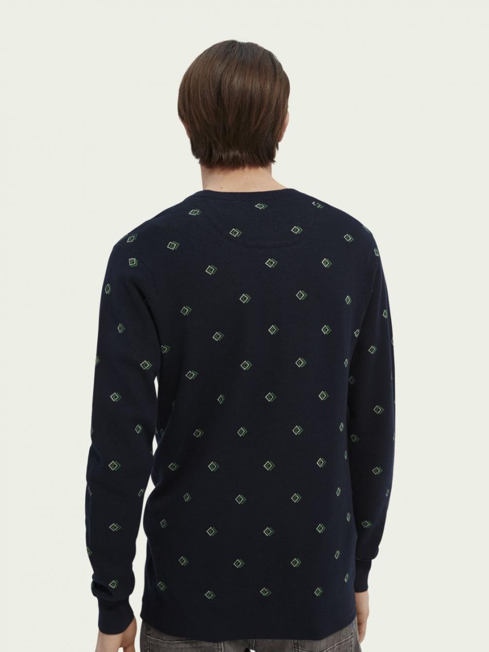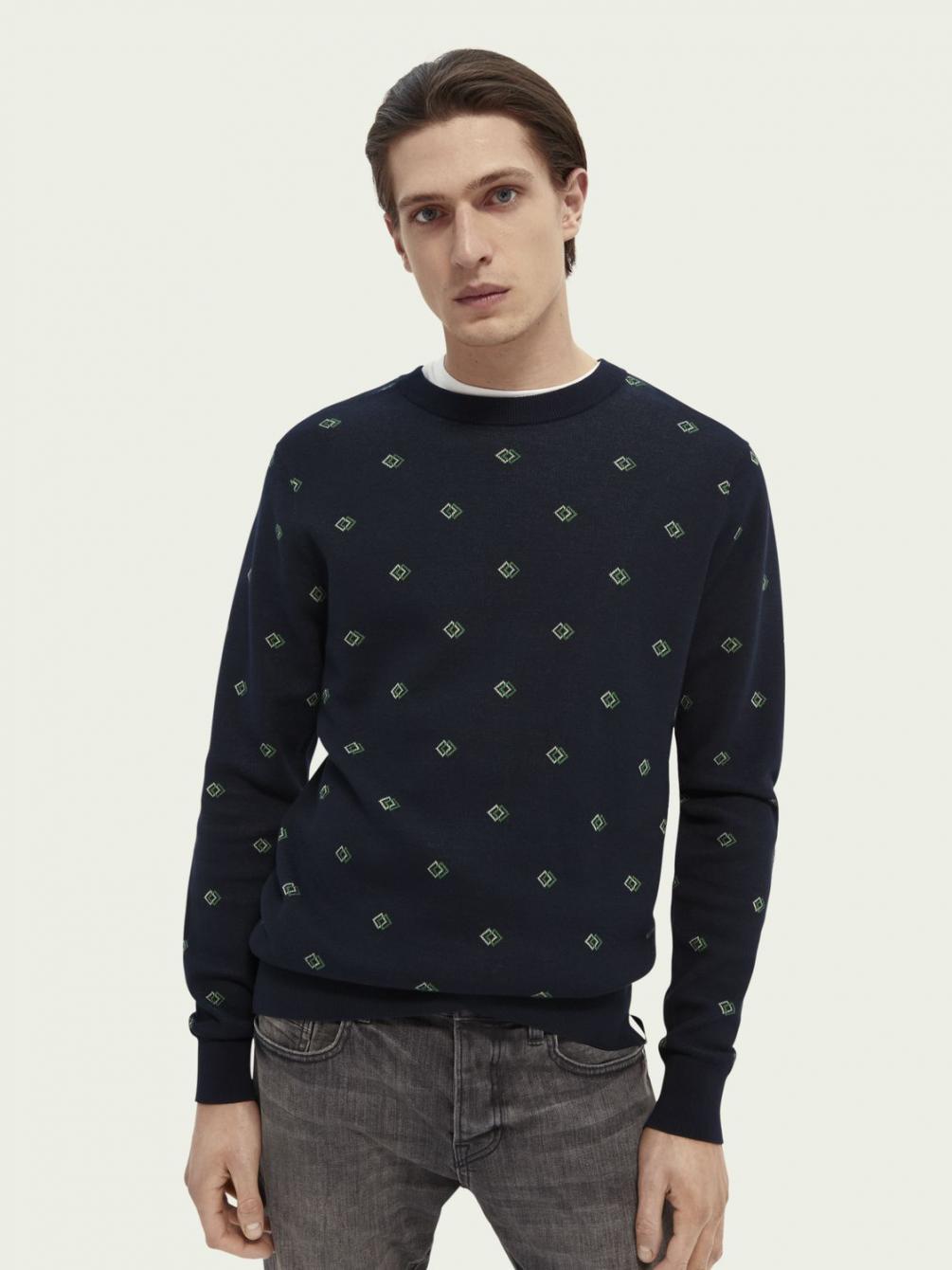 Klassiek en comfort komen samen in onze sweater met ronde hals van katoen. Gemaakt om lang mee te gaan, met een kleurrijk all-over-mini-jacquarddessin.