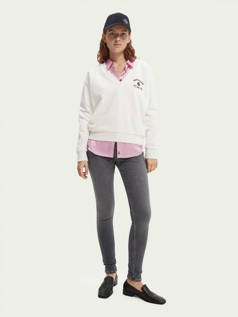 Moeiteloos comfort en stijl zijn verenigd in onze nieuwste sweater, ontworpen met een diepe V-hals en een geribbelde zoom en mouwboorden. Gedeeltelijk gemaakt met biologisch katoen (85%): niet genetisch gemodificeerde zaadjes worden gezaaid in grond die vrij is van pesticiden en kunstmest, met minder waterverbruik en geteeld met gebruik van gewasrotatie, wat beter is voor de gezondheid van de bodem. Dit is een mix, de precieze samenstelling van het materiaal staat vermeld op het label en in de highlights.