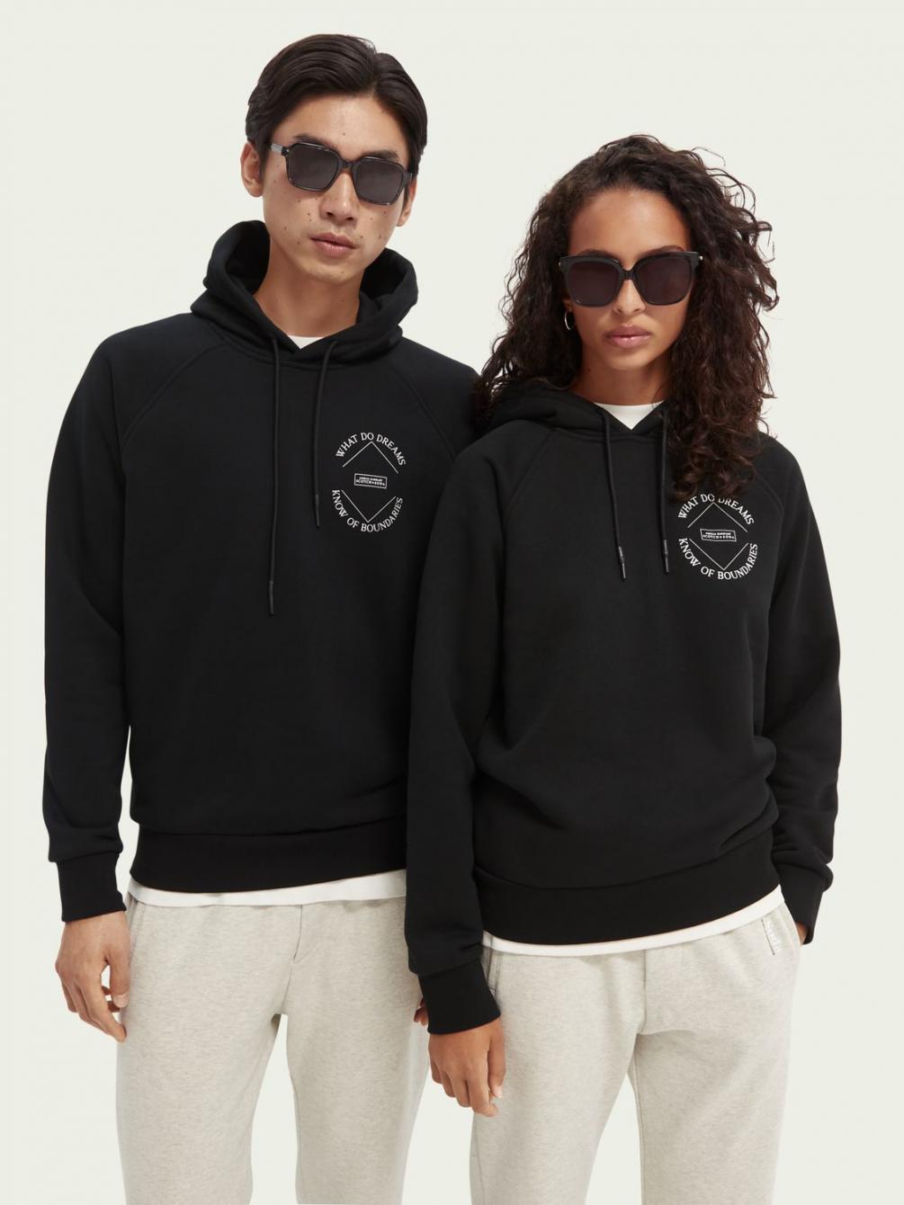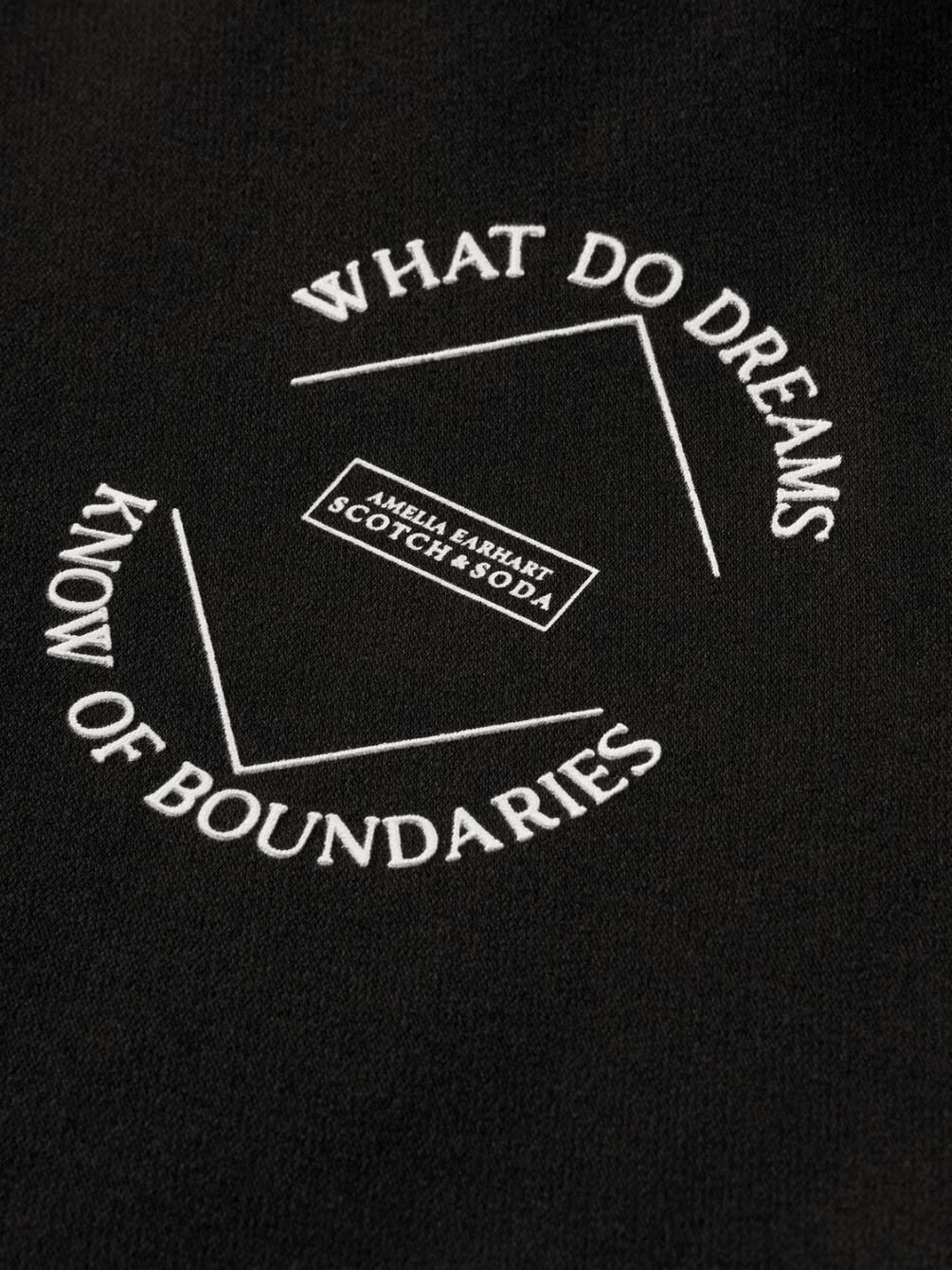 De ultieme hoodie, perfect voor een luie zondag… of eigenlijk iedere dag dat je niet al te veel tijd wilt besteden aan je kledingkeuze. Deze hoodie is gebreid van katoen van hoge kwaliteit en gedecoreerd met een ‘Amelia’ graphic op de voorkant. Gedeeltelijk (85%) gemaakt met biologisch katoen: niet genetisch gemodificeerde zaadjes worden gezaaid in grond die vrij is van pesticiden en kunstmest, minder waterverbruik en geteeld met gebruik van gewasrotatie, wat beter is voor de gezondheid van de bodem.
