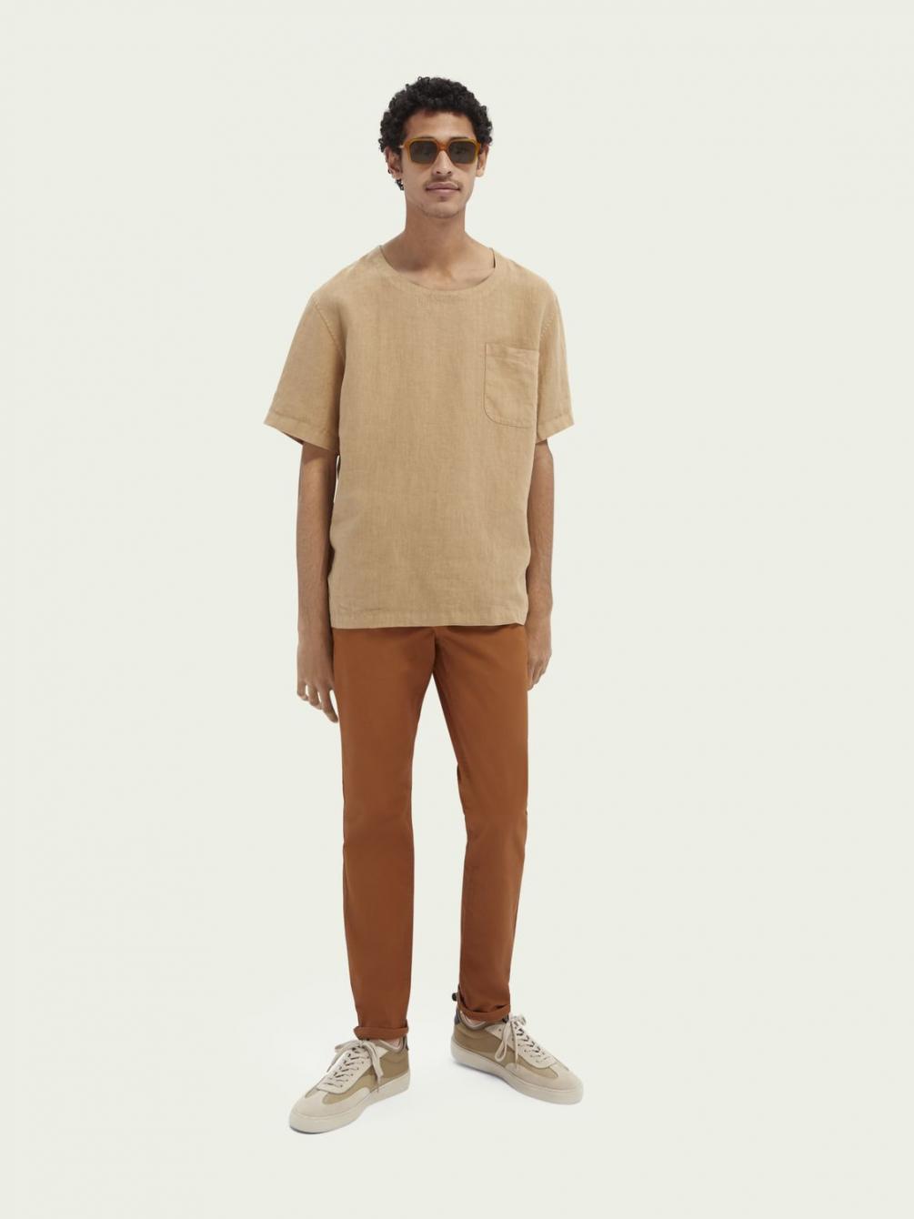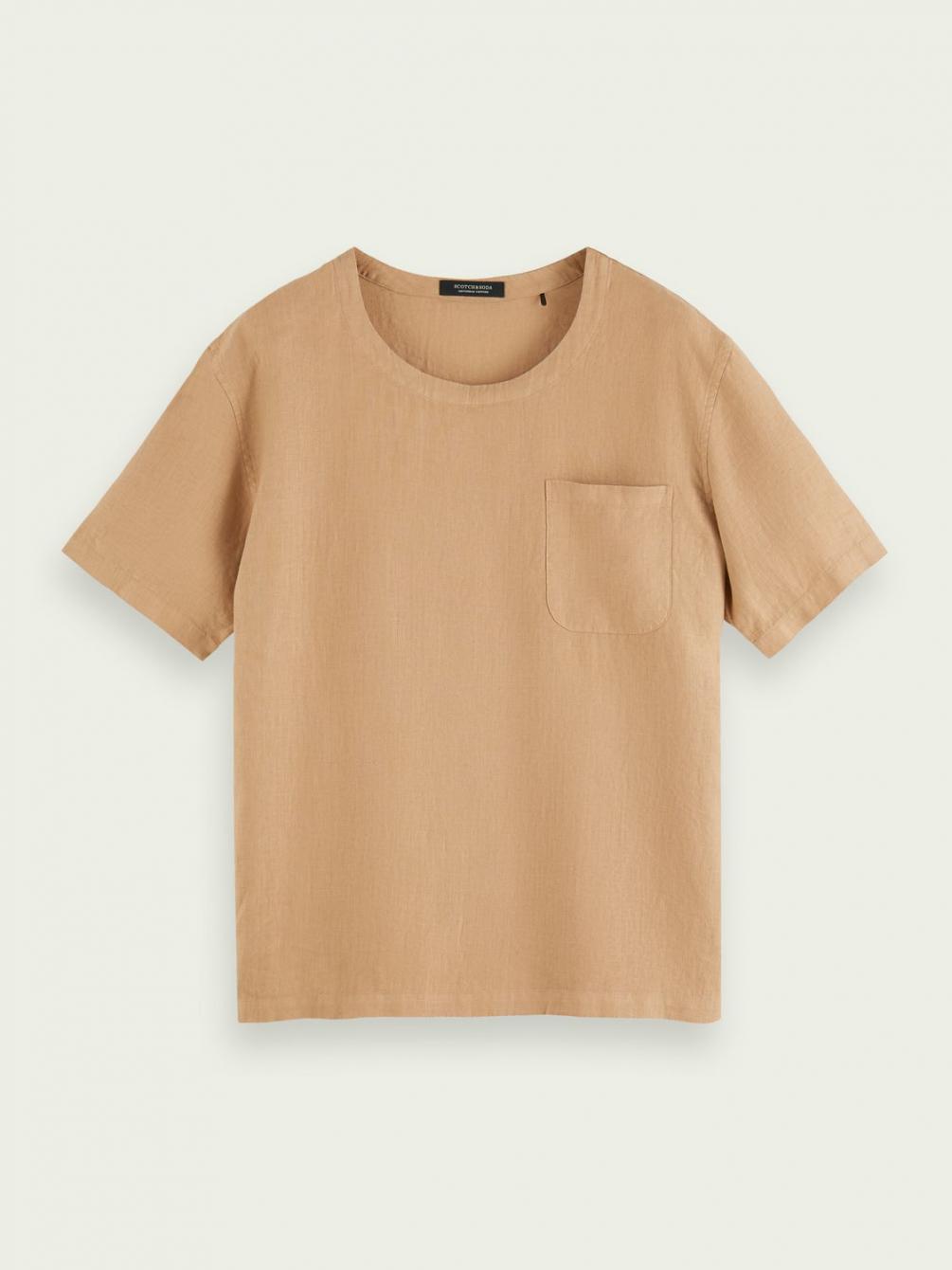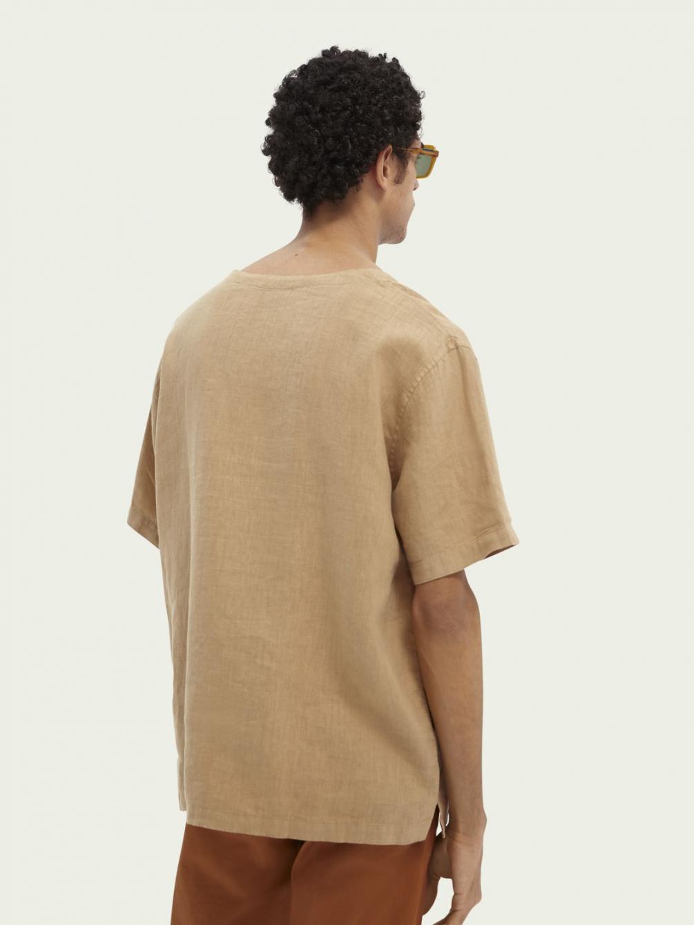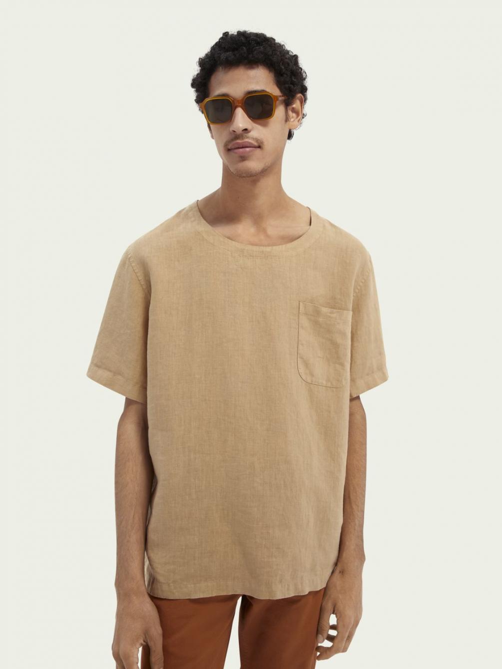 Een lichtgewicht linnen T-shirt doet het altijd goed bij warm weer, maar deze versie in garment-dyed vintage look is de ultieme zomerbasic. Dit item is afgewerkt met een borstzak en heeft genoeg flair om alleen of gelaagd te dragen.
