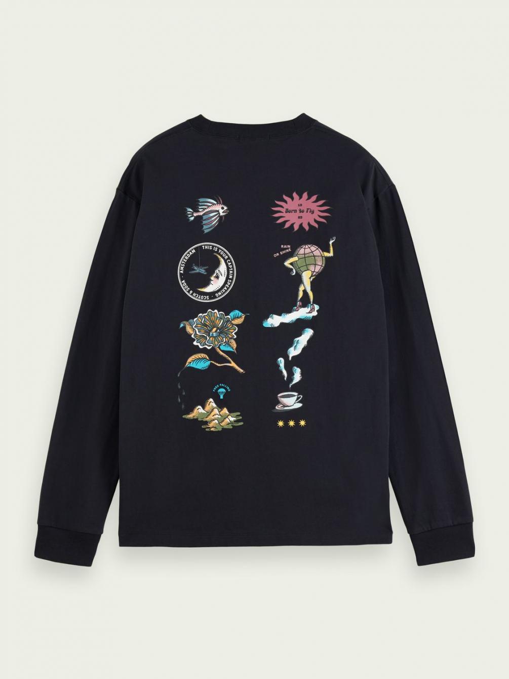 T-shirts & polo’s | Graphic T-shirt van biologisch katoen Black – Scotch & Soda Heren