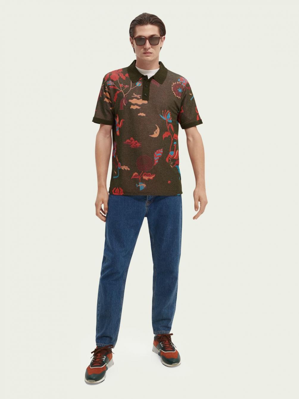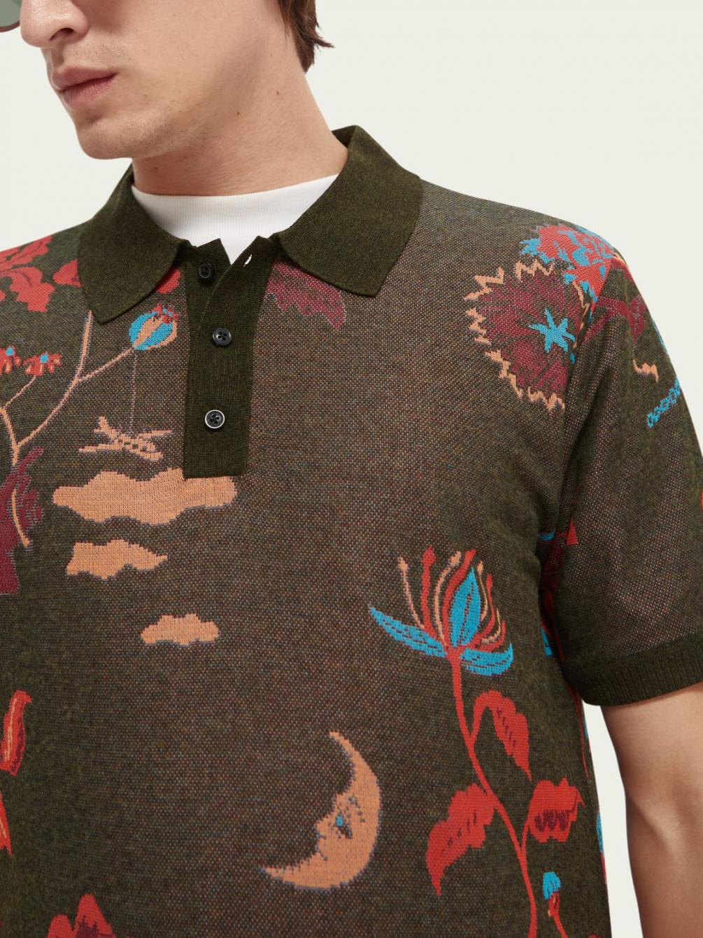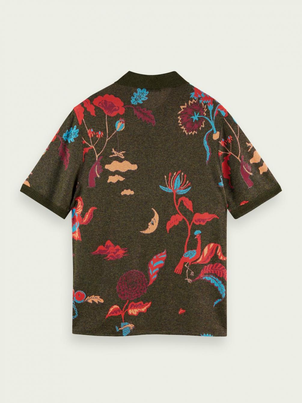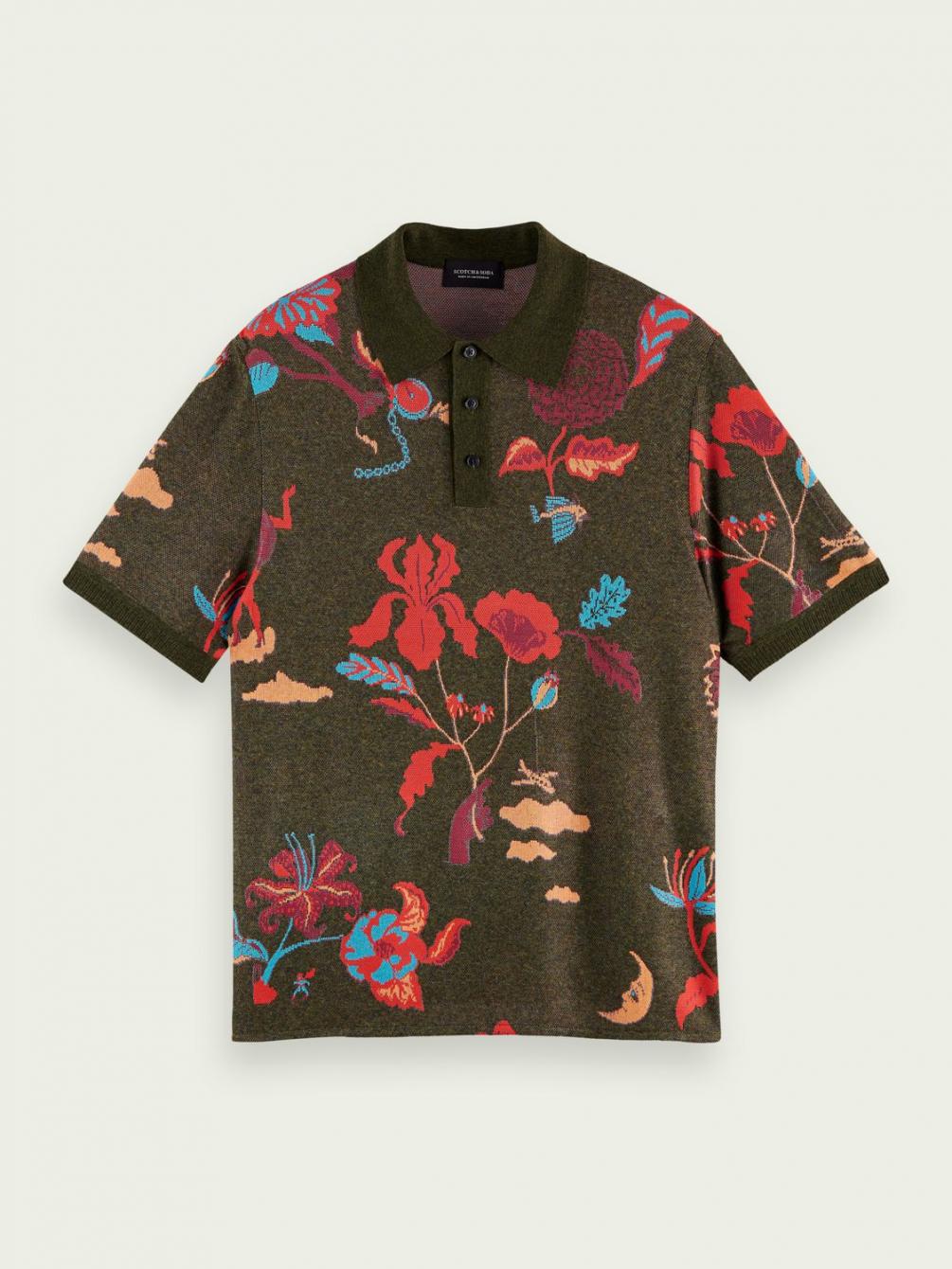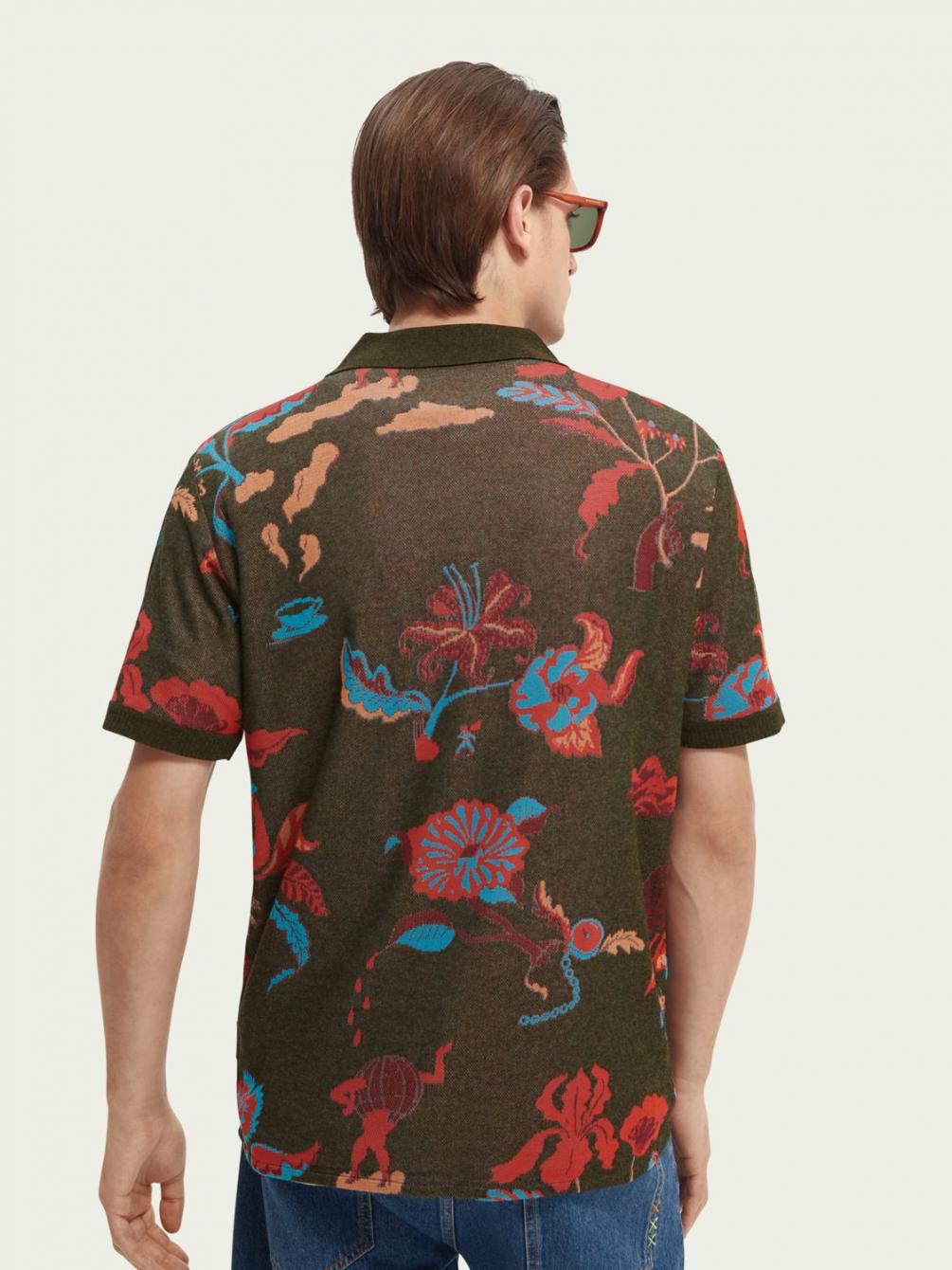 Onze jacquard polo geeft een unieke touch aan je zomerse outfit. Dit lichtgewicht item maakt een statement met het bloemenontwerp, ongeacht de gelegenheid.