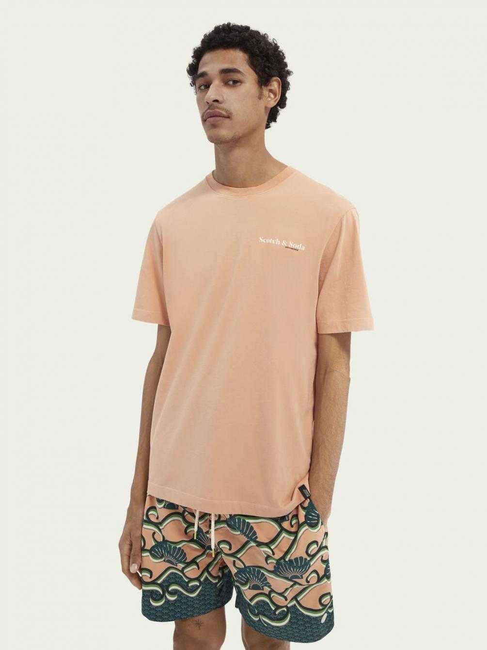 T-shirts & polo’s | T-shirt van biologisch katoen met grafisch logo Pink Horizon – Scotch & Soda Heren
