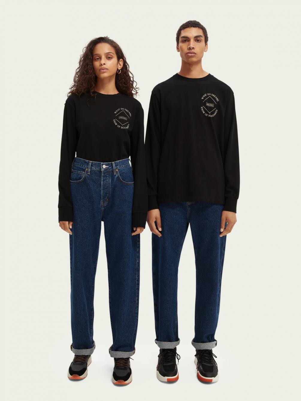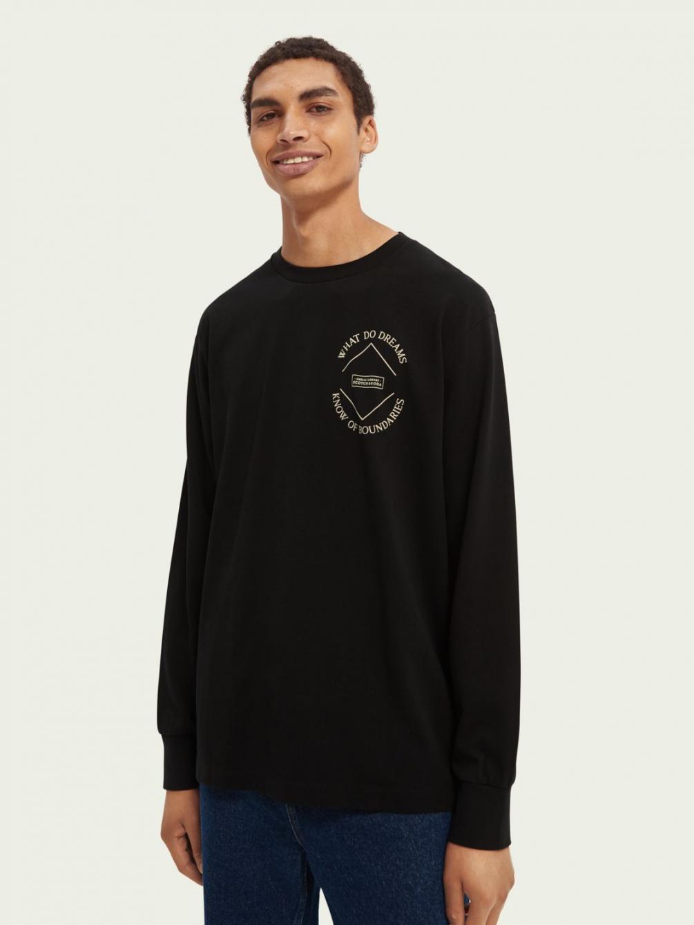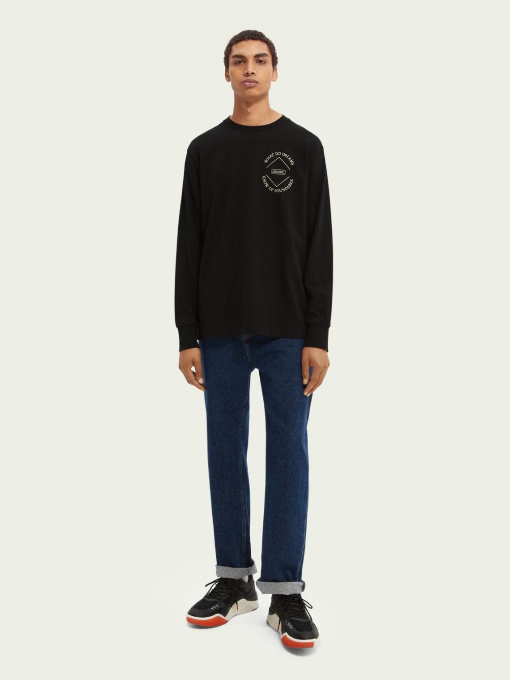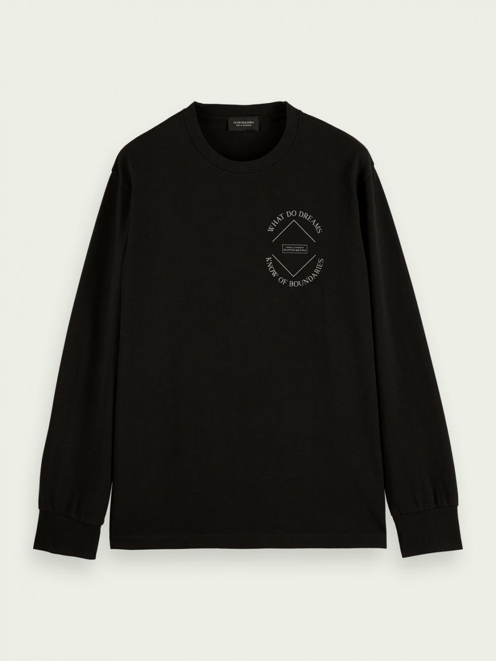T-shirts & polo’s | Unisex T-shirt met lange mouwen en graphic Black – Scotch & Soda Heren