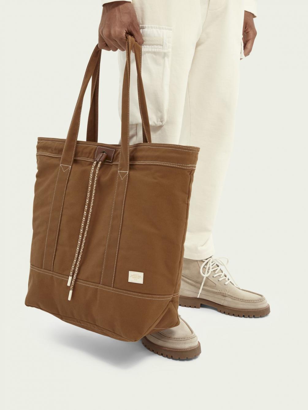 Als je denkt dat een draagtas je niet kan verrassen, dan ken je Scotch nog niet. Ons robuuste en toch lichte ontwerp is gemaakt vankatoen en afgewerkt met leren details en een sluiting met trekkoord. Maar deze tas heeft minstens zoveel inhoud. Neem deze ongelooflijk functionele tas altijd met je mee, waar je ook naartoe gaat.