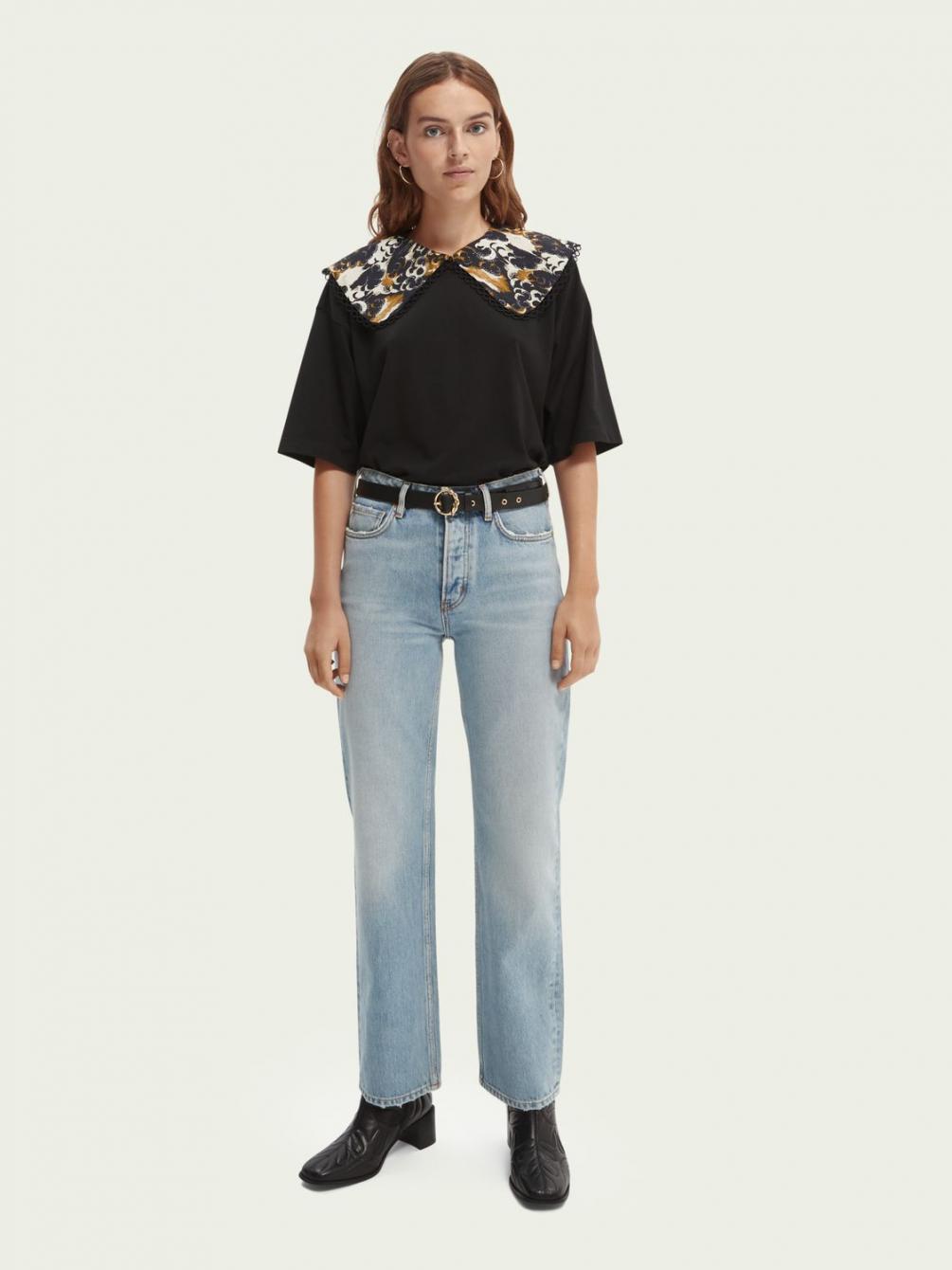 Een boxy fit en een optionele kraag om een statement mee te maken. Onze top met afneembare kraag geeft je opties. Gemaakt met biologisch katoen: niet genetisch gemodificeerde zaadjes worden gezaaid in grond die vrij is van pesticiden en kunstmest, met minder waterverbruik en geteeld met gebruik van gewasrotatie, wat beter is voor de gezondheid van de bodem.