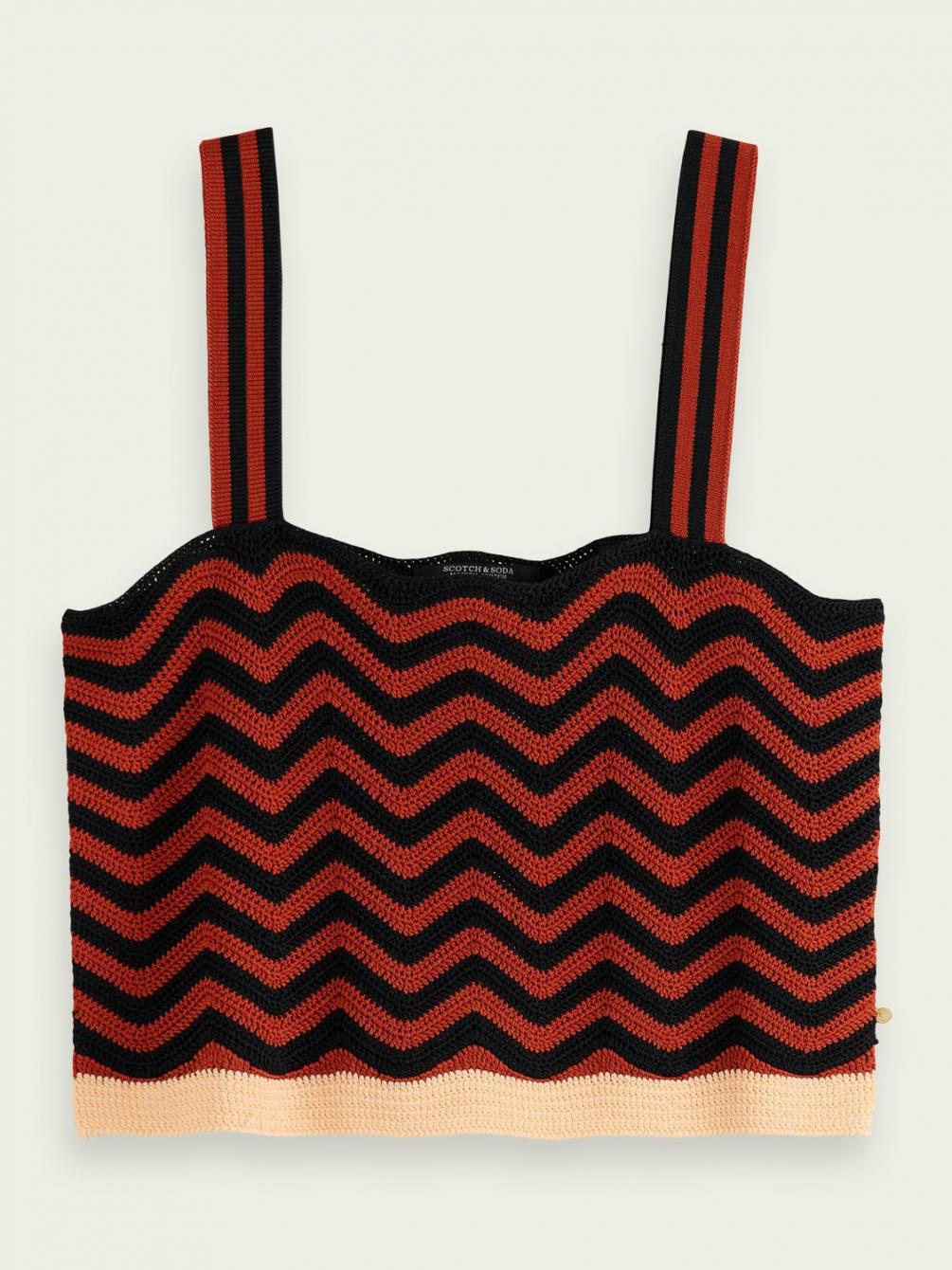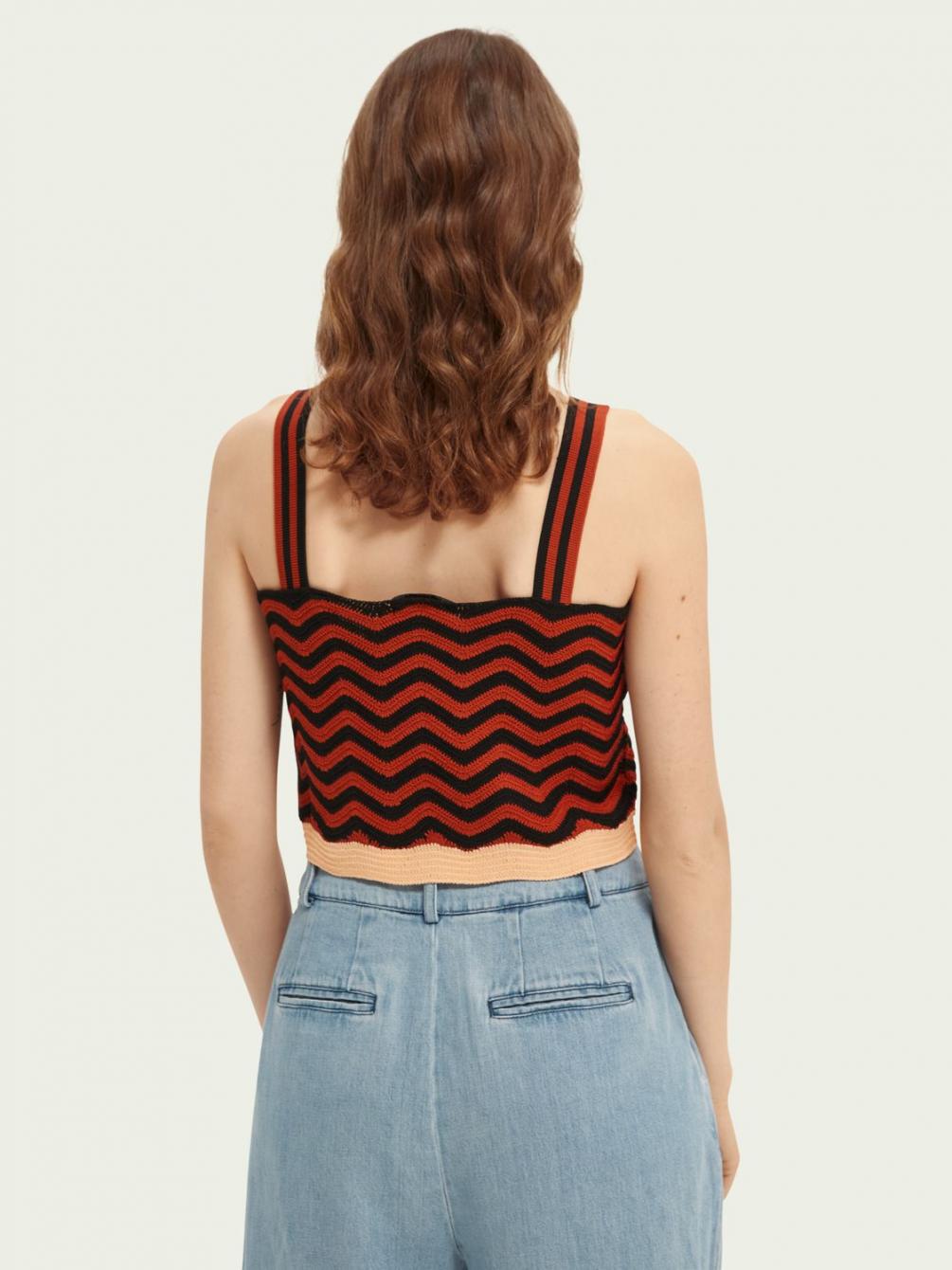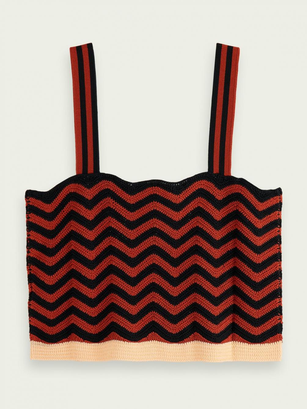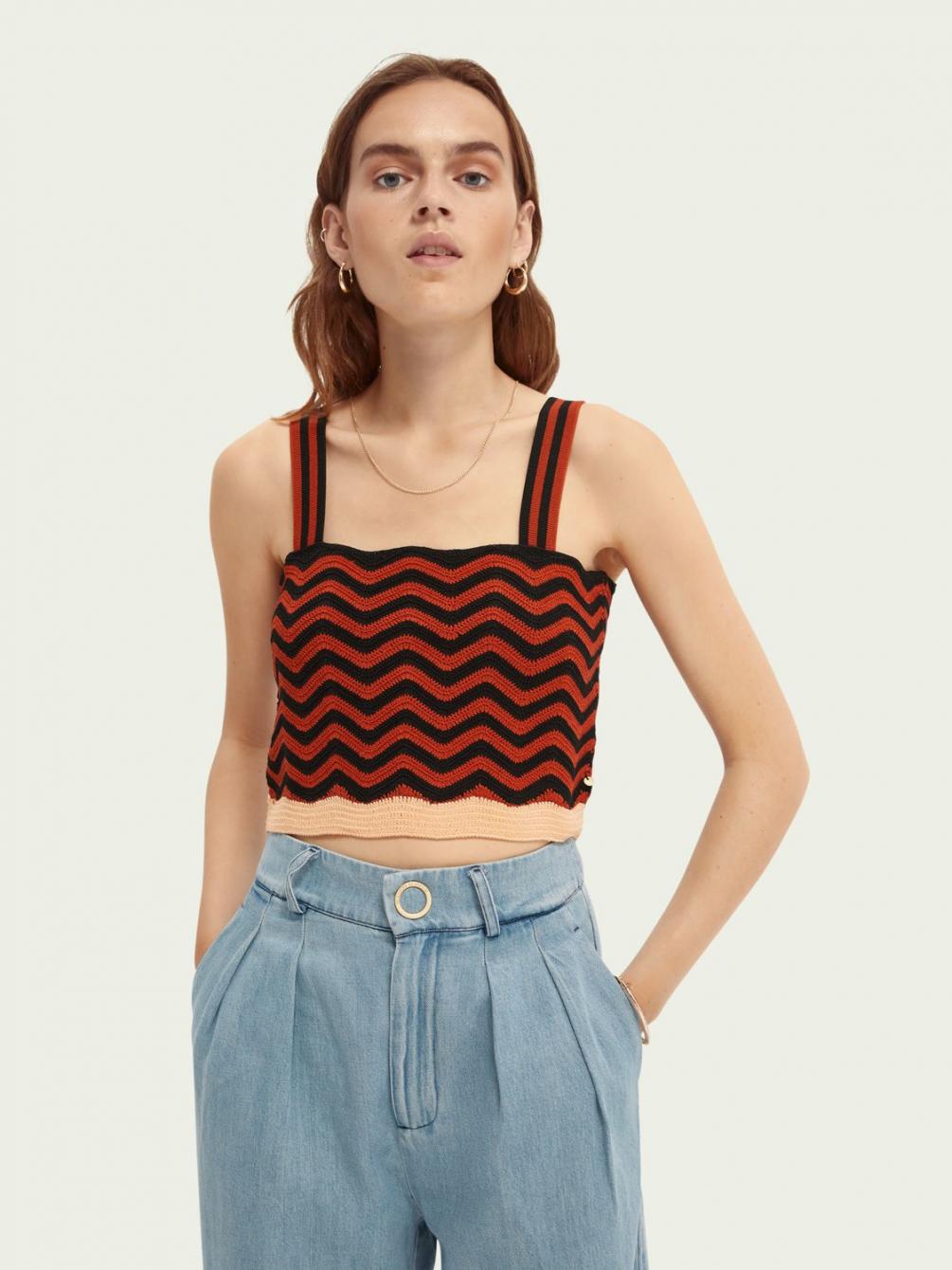 Wij geven een nieuwe dimensie aan de crop top met een gehaakt ontwerp met strepen en een vierkante halslijn. Perfect in combinatie met een lange, vloeiende rok.