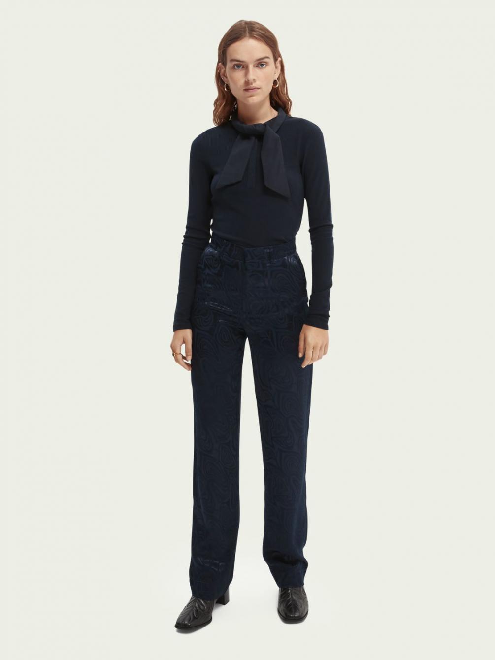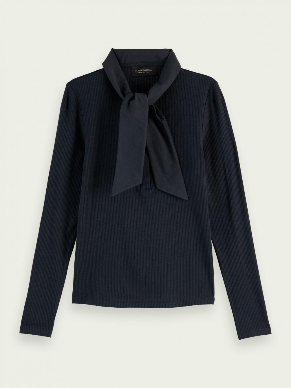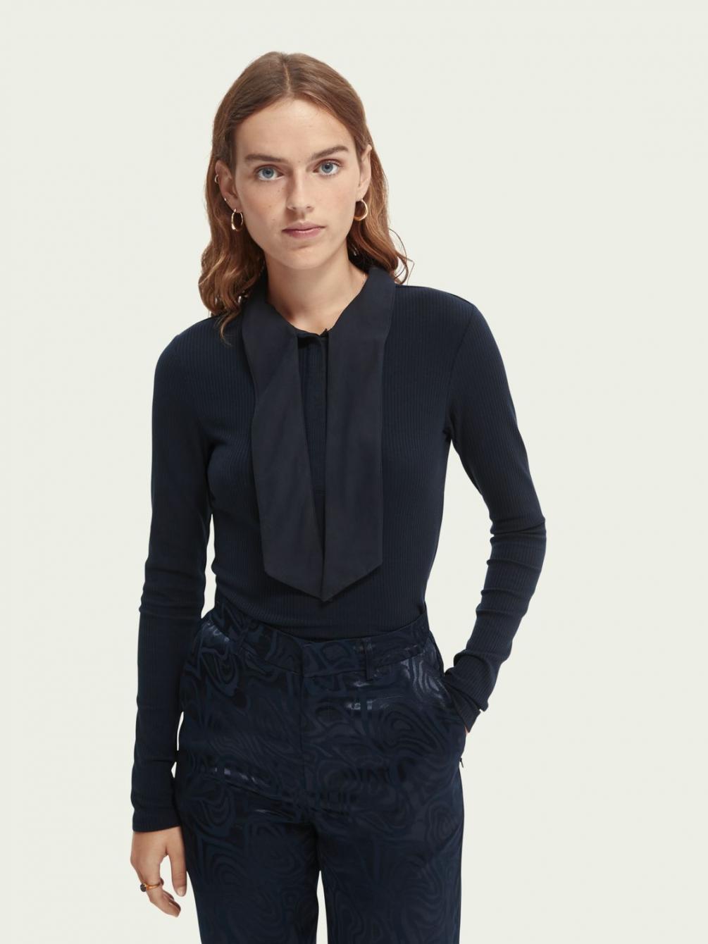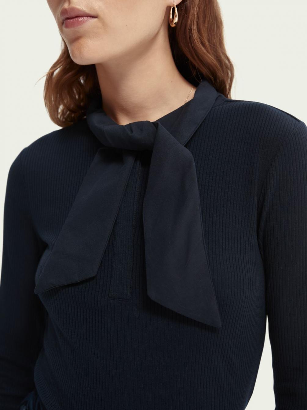 Hier hoef je niet lang over na te denken: deze geribbelde top met sjaaldetail aan de halslijn staat overal goed bij. Geniet ervan….