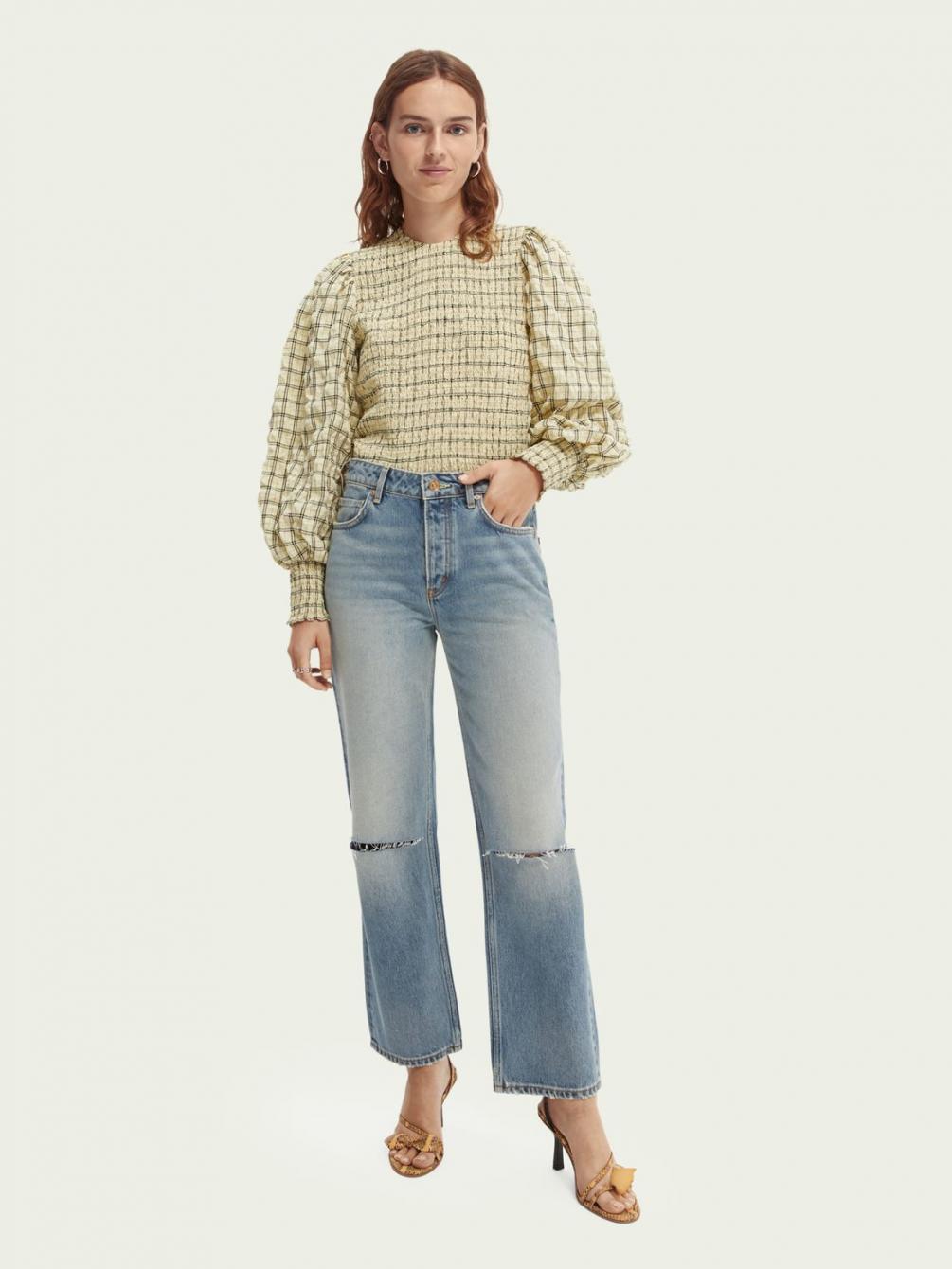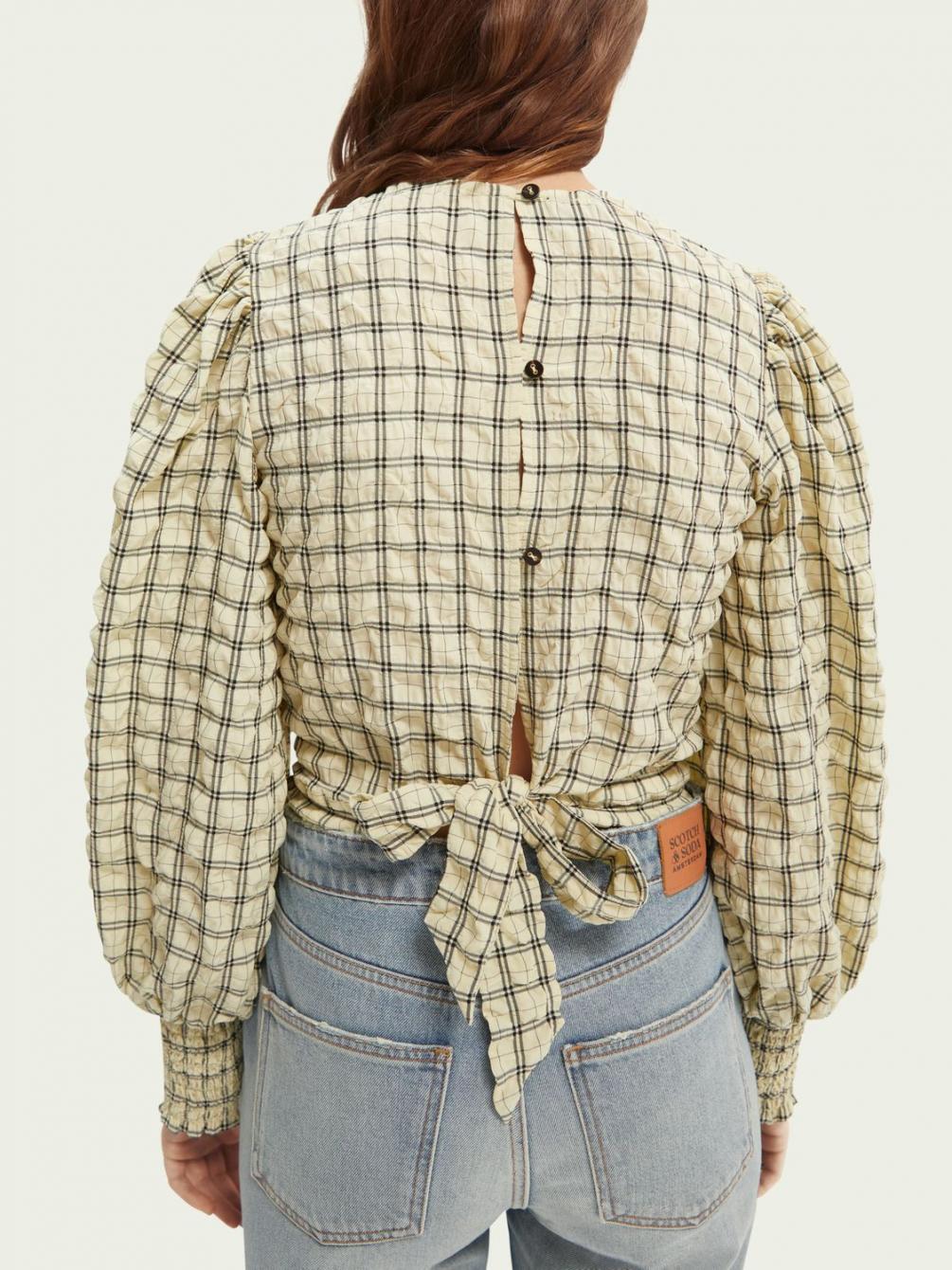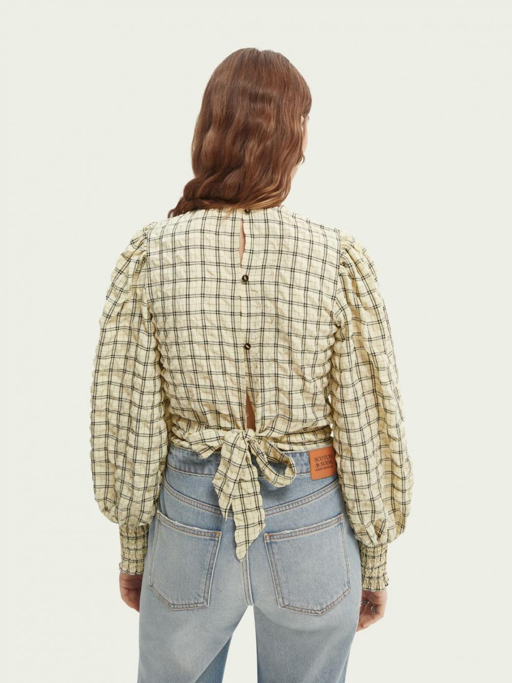 Je nieuwe favoriete top is gemaakt van seersuckermateriaal dat heerlijk aanvoelt en je kunt kiezen uit twee klassieke geruite prints. Dankzij de ronde hals en lange pofmouwen heeft deze top die moderne en toch klassieke look die in geen enkele garderobe mag ontbreken.
