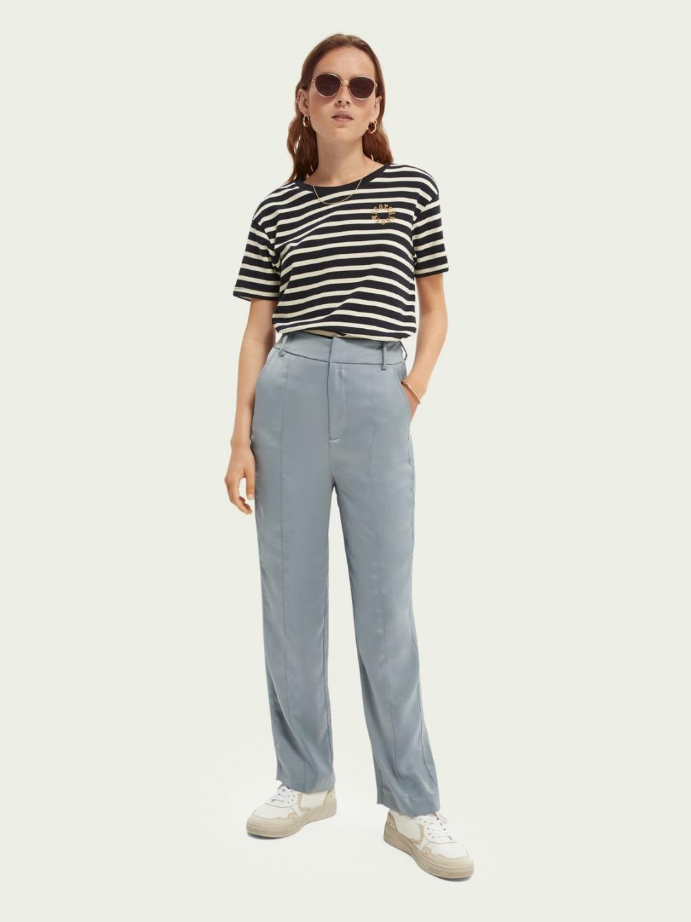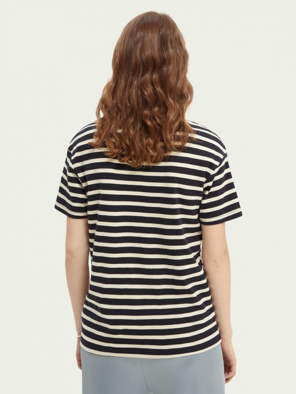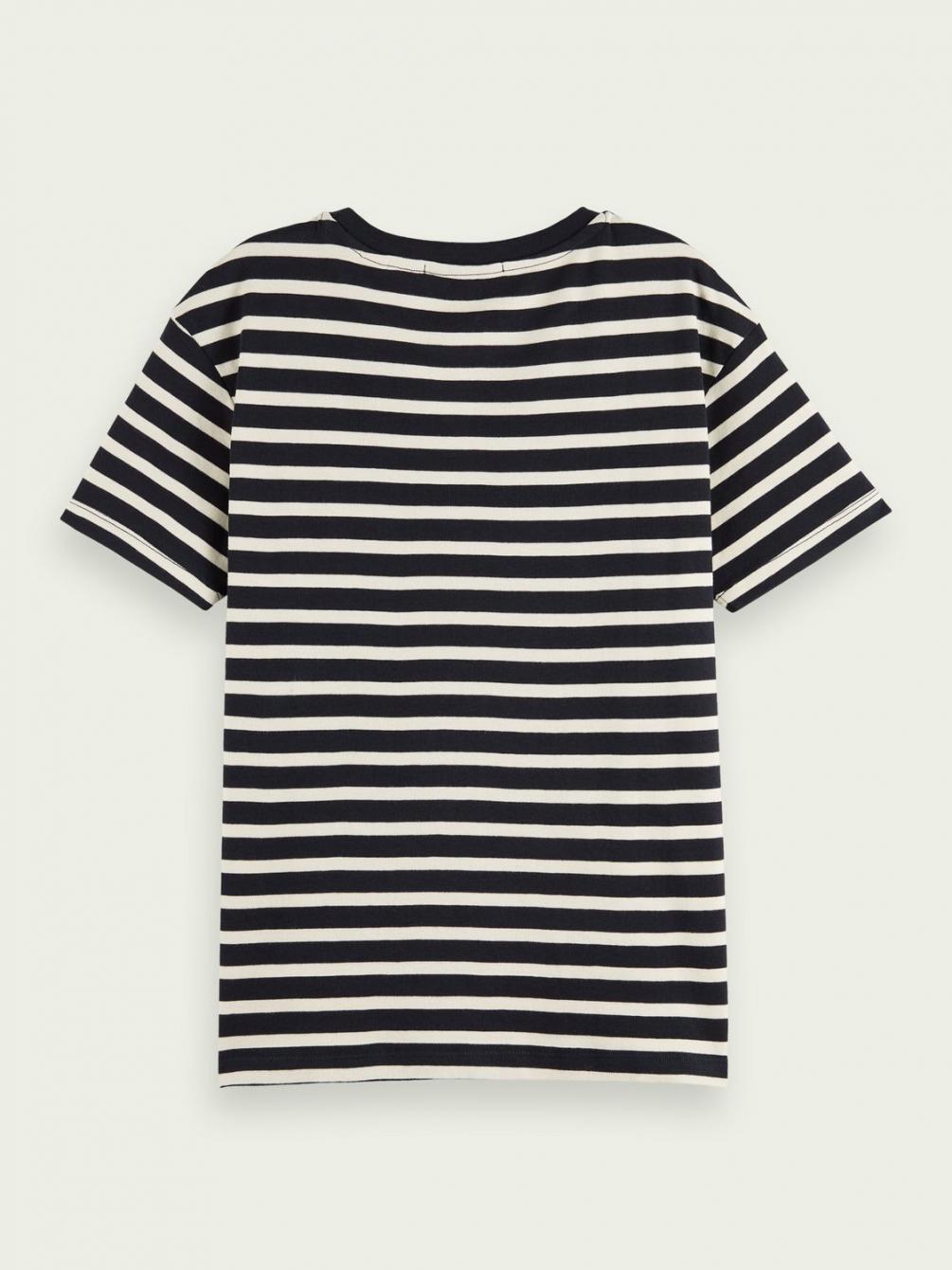 Dit gestreepte T-shirt vankatoen staat geweldig in laagjeslooks. Het grafische detail links op de borst voegt een vrolijke finishing touch toe. Dit item is klaar voor zomerdagen….