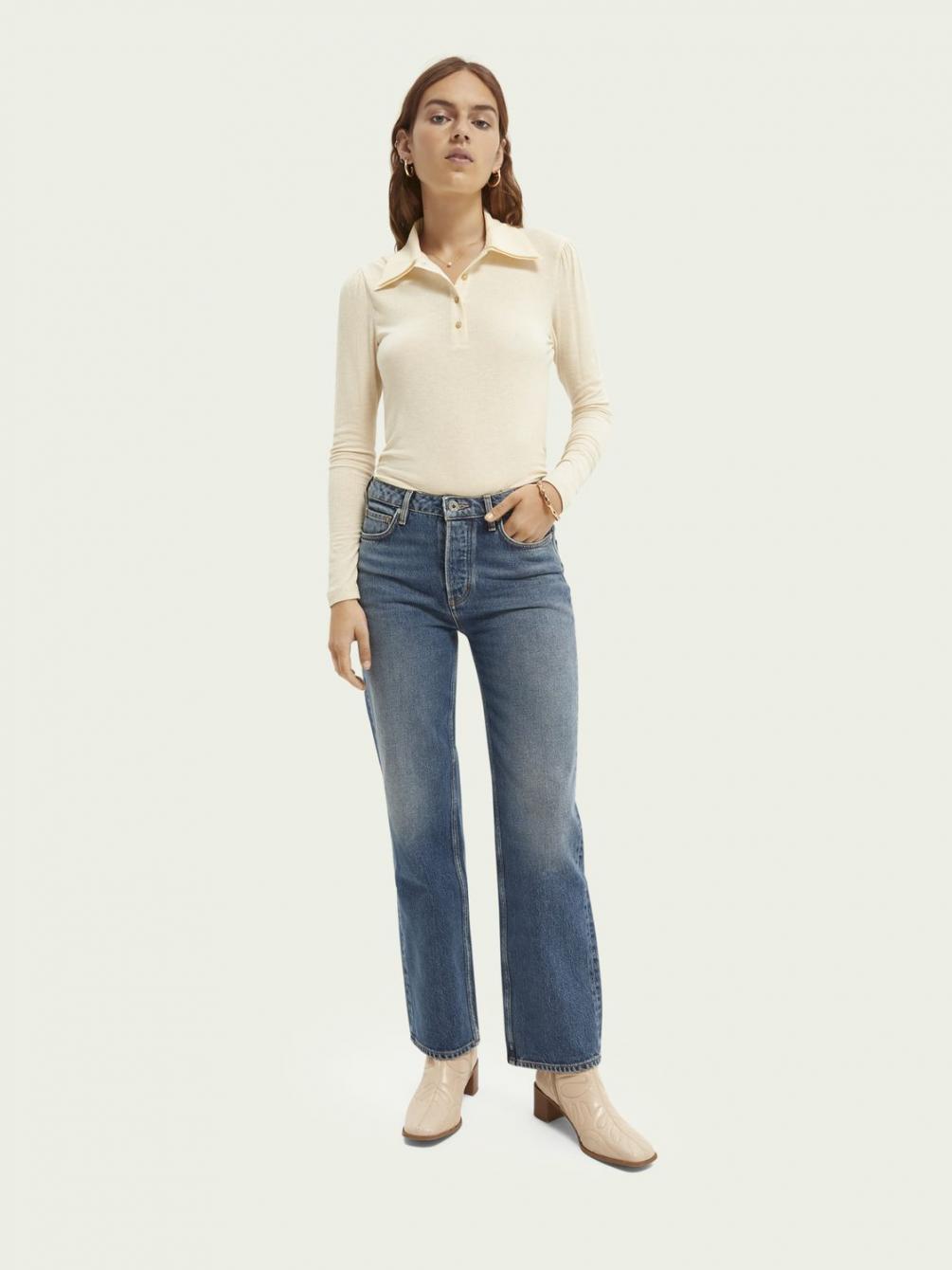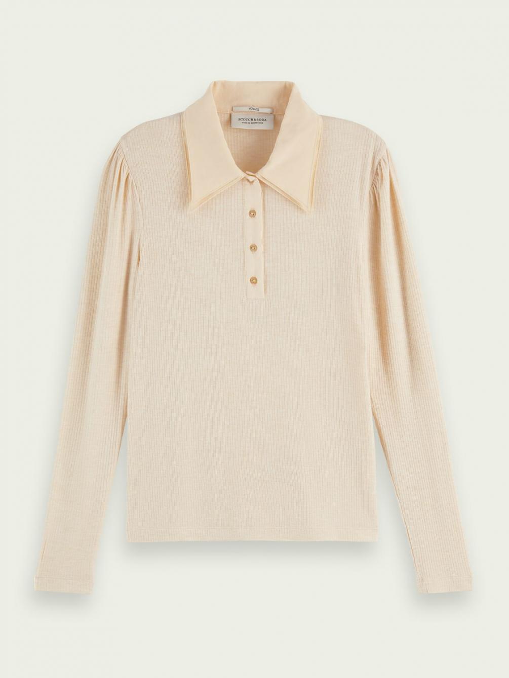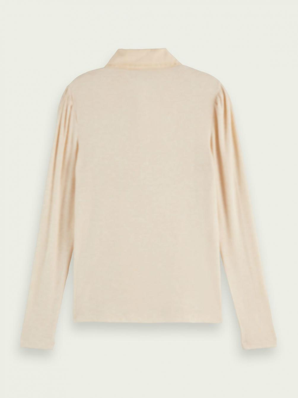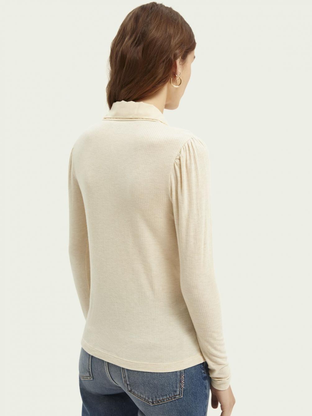 Tops & T-shirts | Getailleerd T-shirt met lange mouwen en dubbele kraag Vanilla Melange – Scotch & Soda Dames