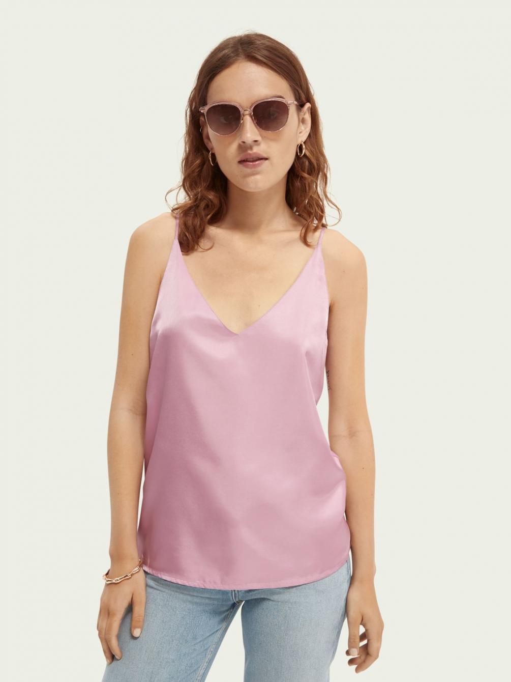 Het absolute fundament van de damesgarderobe: onze tanktop met V-hals is verkrijgbaar in verschillende kleuren (voor iedere stemming). Deze top met een geweven voorkant en katoenen achterkant heeft niet veel nodig om indruk te maken.