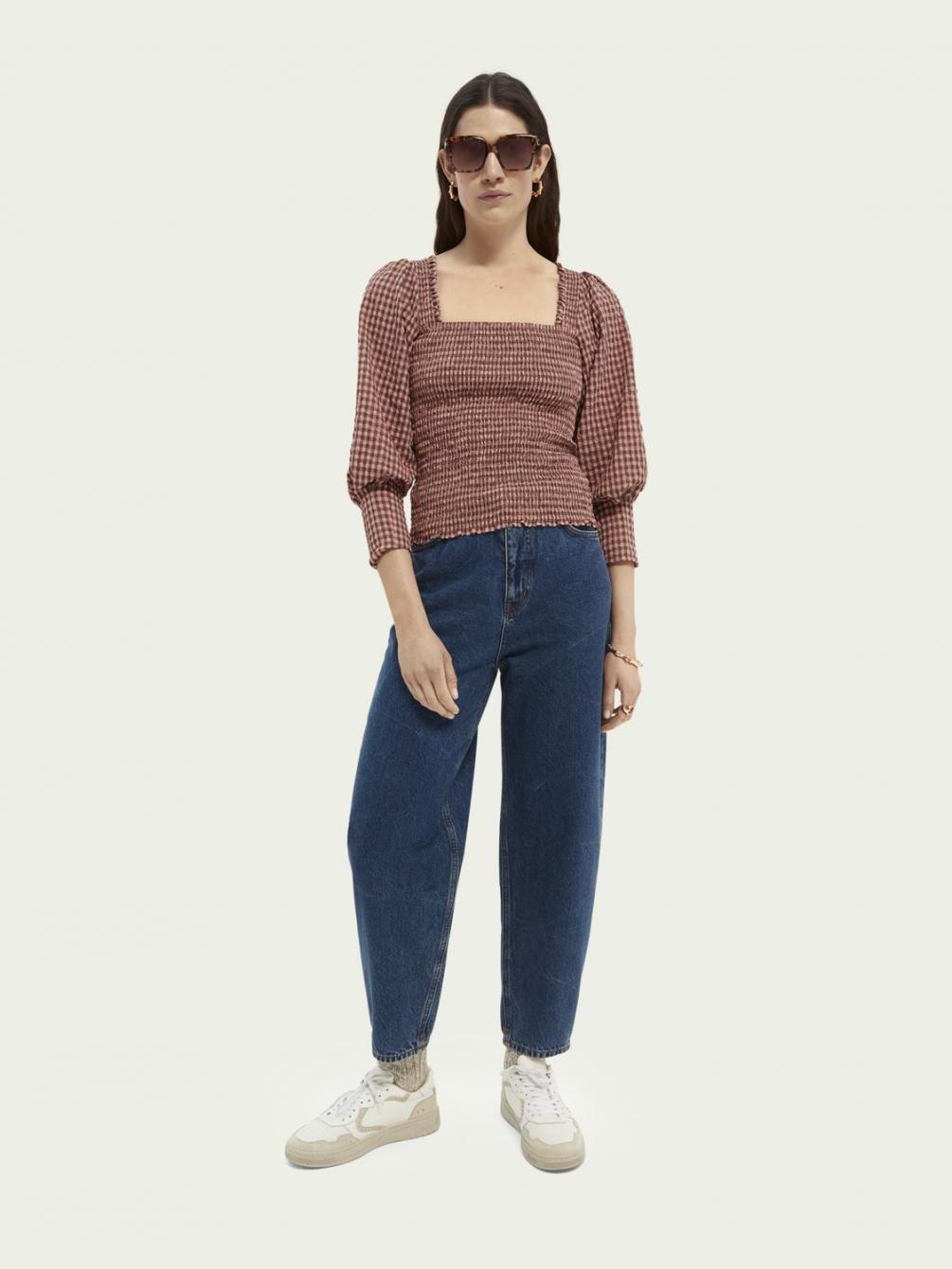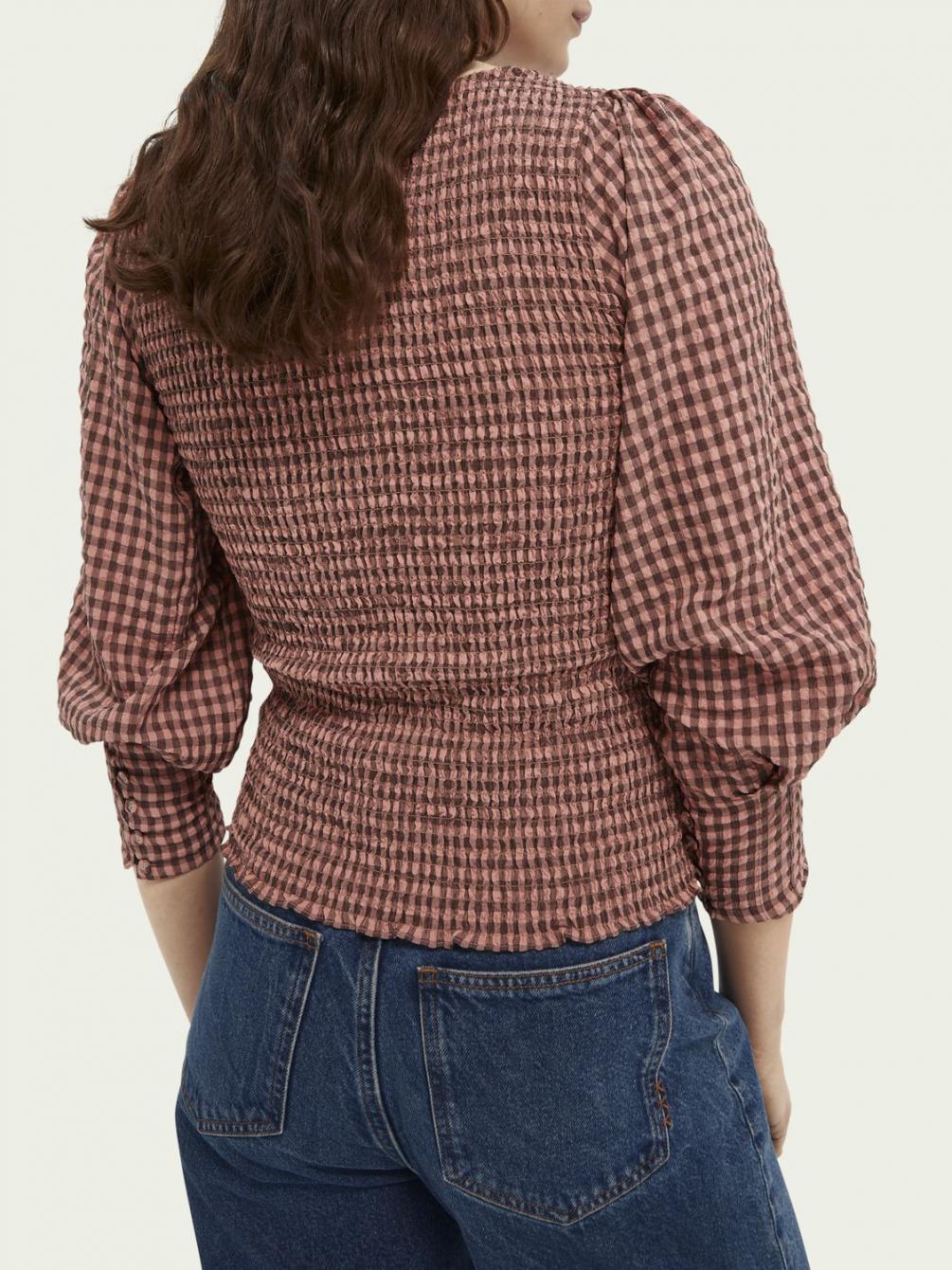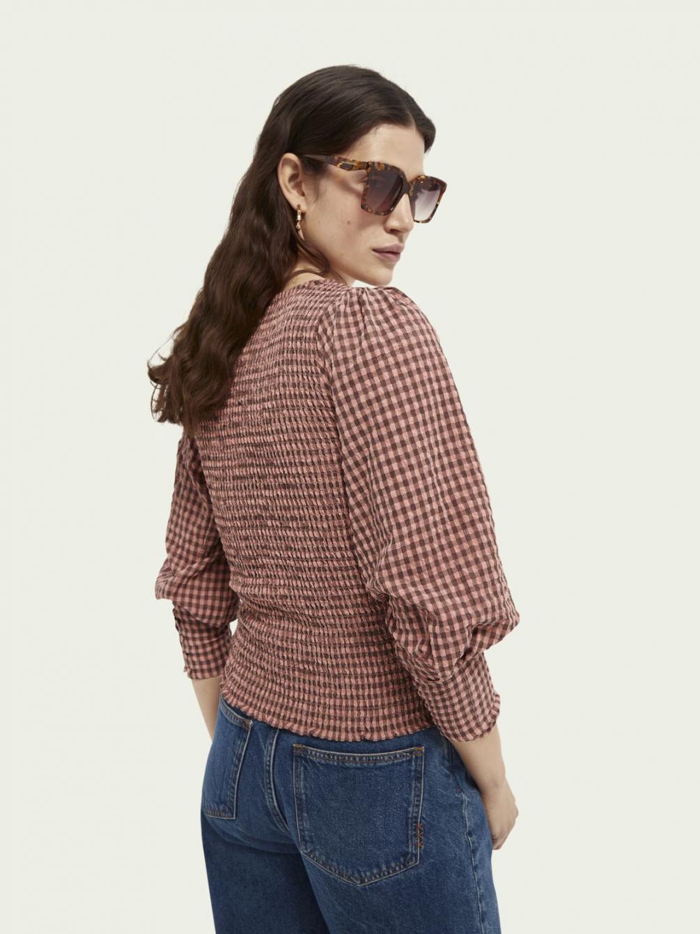 Onze gesmokte top zit boordevol bohemian vibes. Deze top met een vierkante halslijn, volumineuze mouwen en een seersucker print staat perfect bij een vloeiende rok of je favoriete lichte jeans.