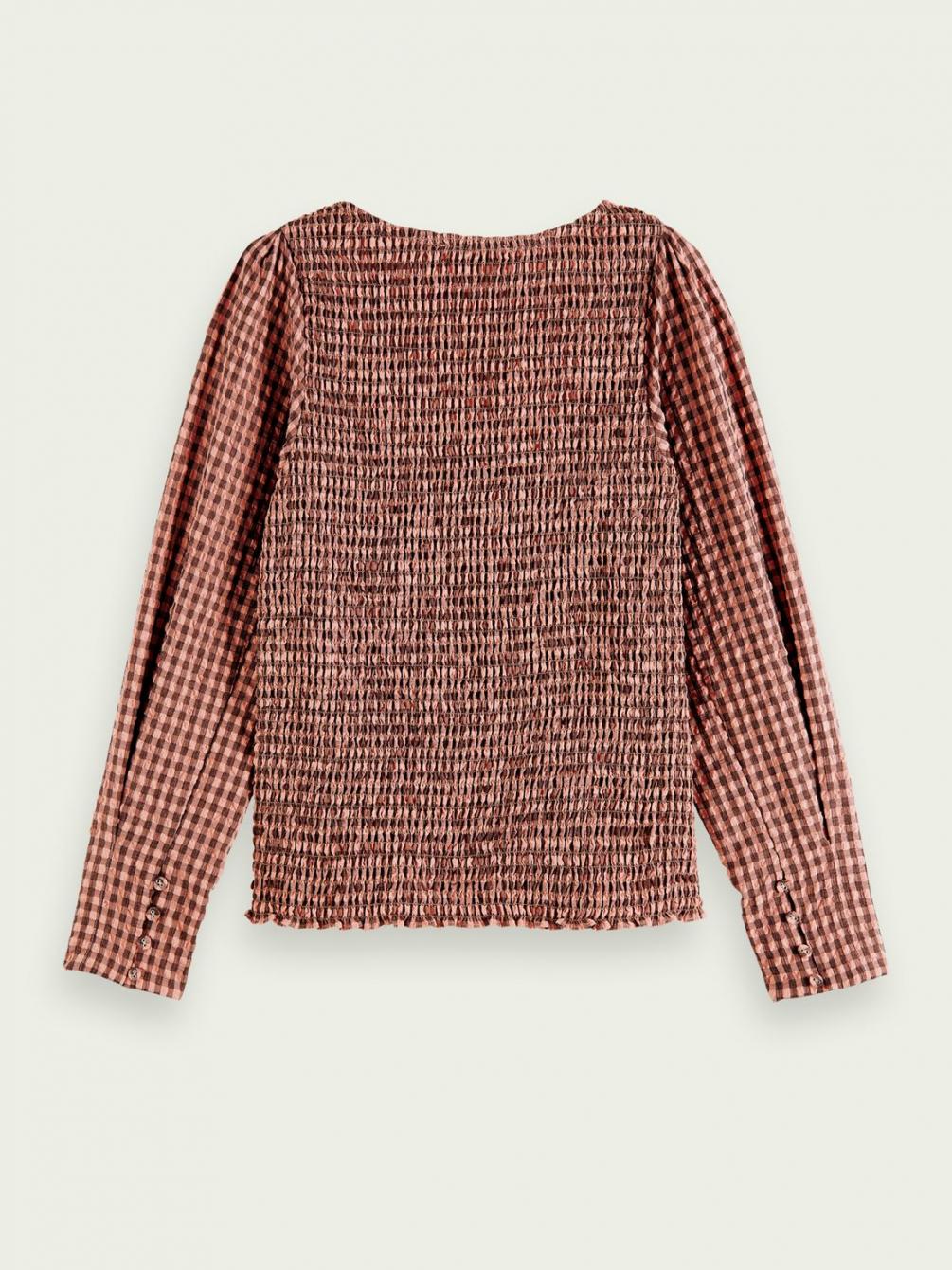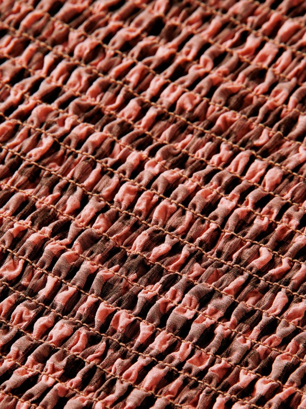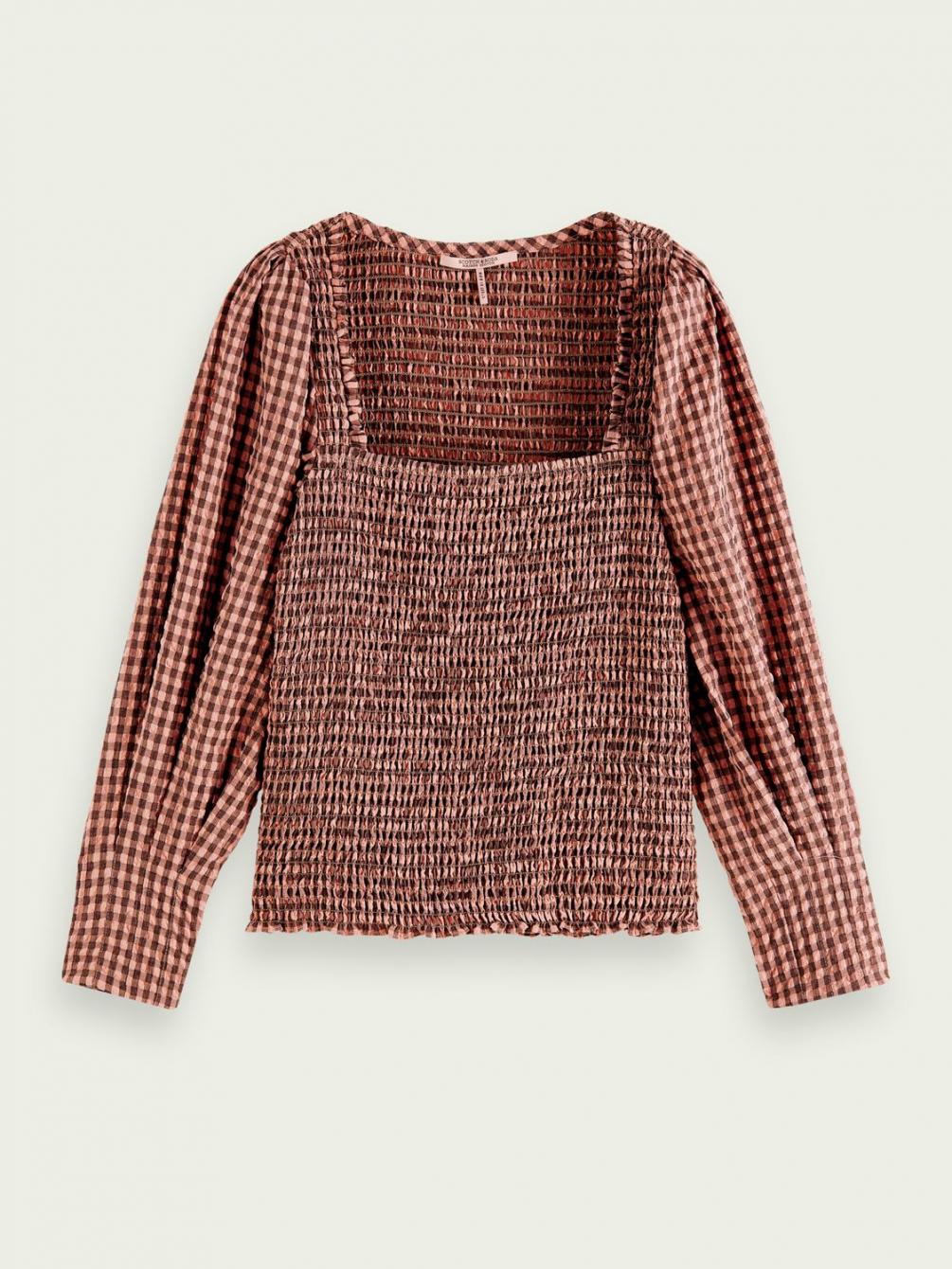 Onze gesmokte top zit boordevol bohemian vibes. Deze top met een vierkante halslijn, volumineuze mouwen en een seersucker print staat perfect bij een vloeiende rok of je favoriete lichte jeans.