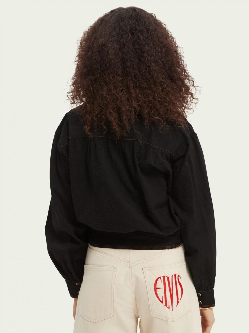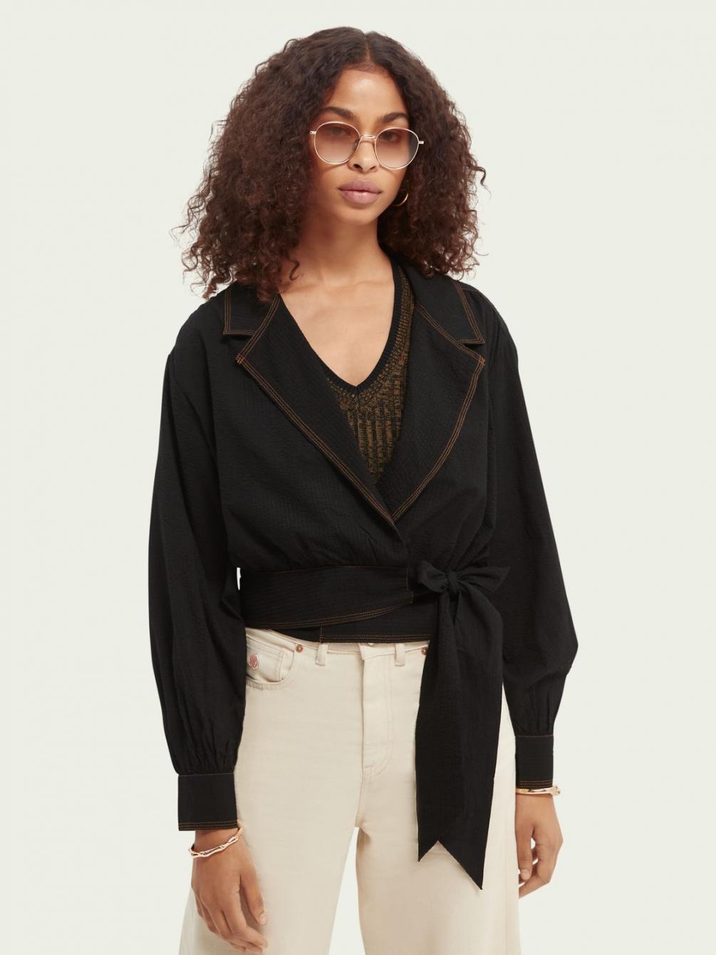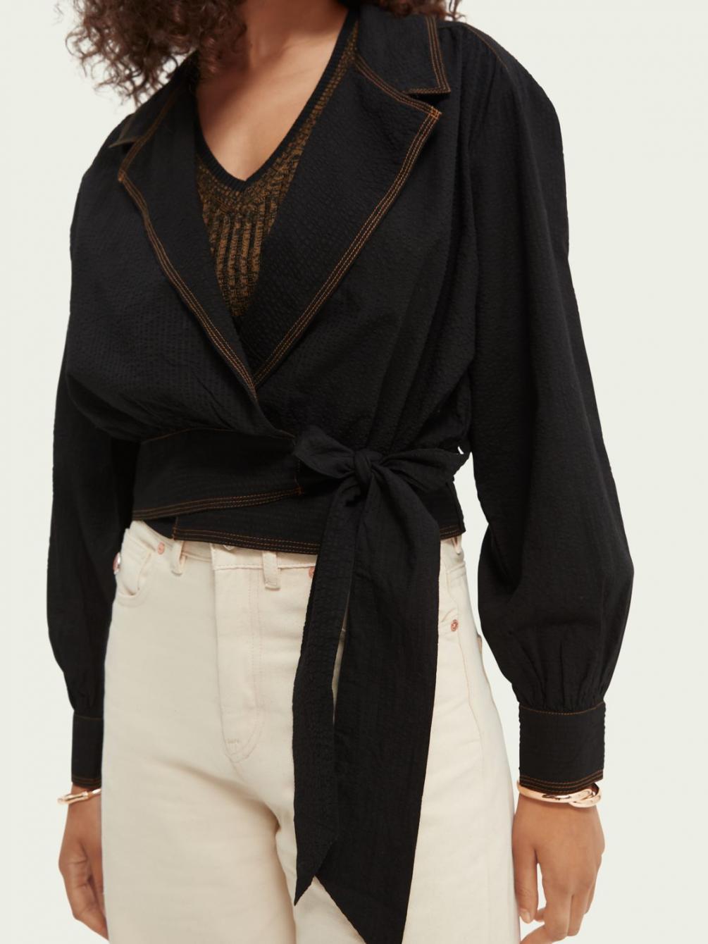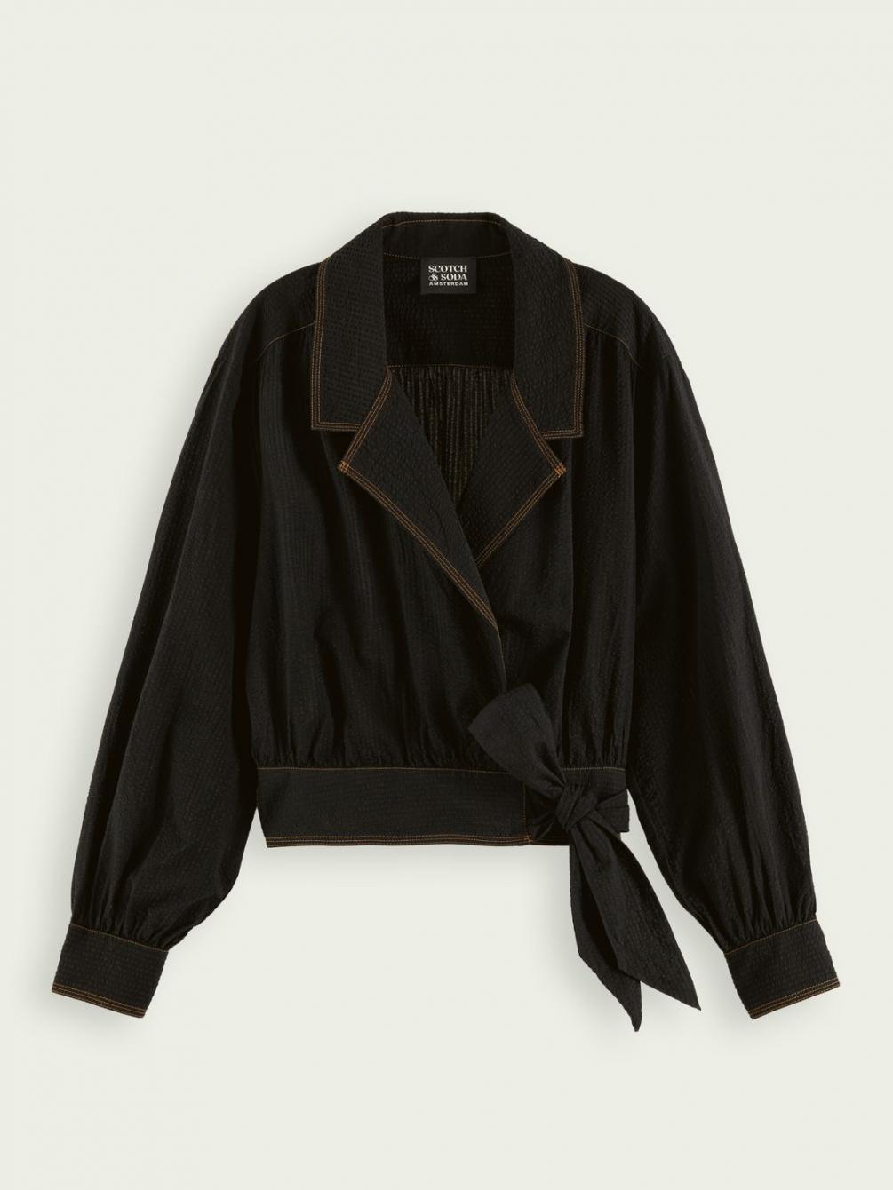 Deze seersucker top is gemaakt van biologisch katoen en afgewerkt met contrasterende stiksels langs de randen. Simpelweg wikkelen en dichtknopen en je bent klaar om aan de dag te beginnen. Gemaakt met biologisch katoen: niet genetisch gemodificeerde zaadjes worden gezaaid in grond die vrij is van pesticiden en kunstmest, met minder waterverbruik en geteeld met gebruik van gewasrotatie, wat beter is voor de gezondheid van de bodem.