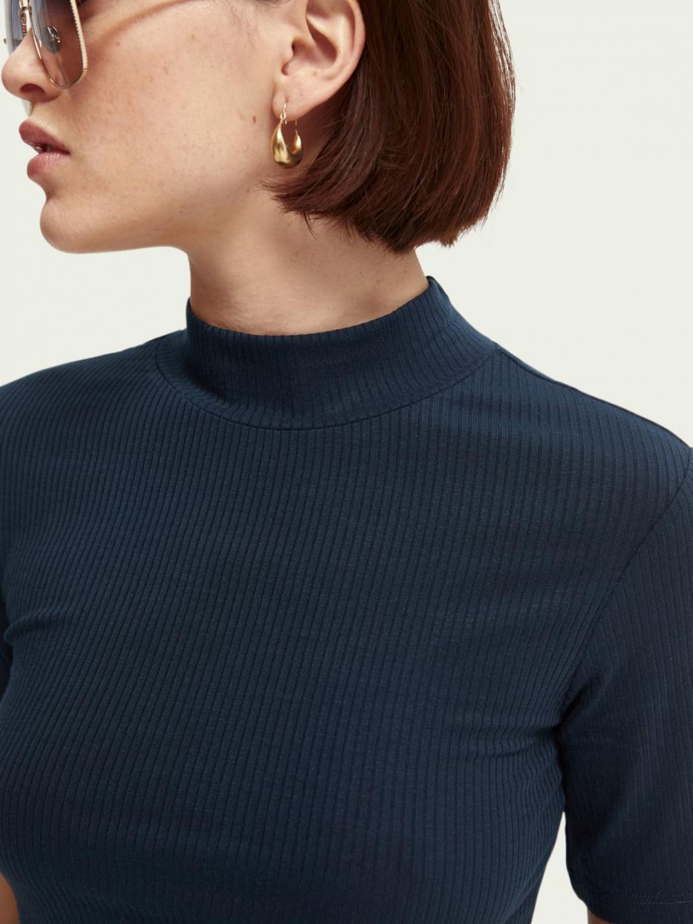 Ga overal naartoe, waar je maar wilt, met ons geribbelde T-shirt met col. Het is gemaakt van zacht Tencel™ met een vleugje stretch. Het is gemaakt voor jou.