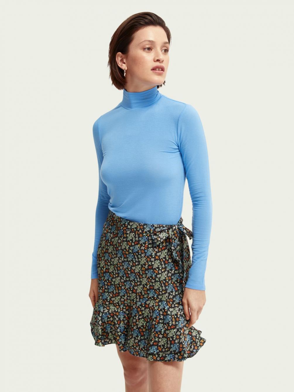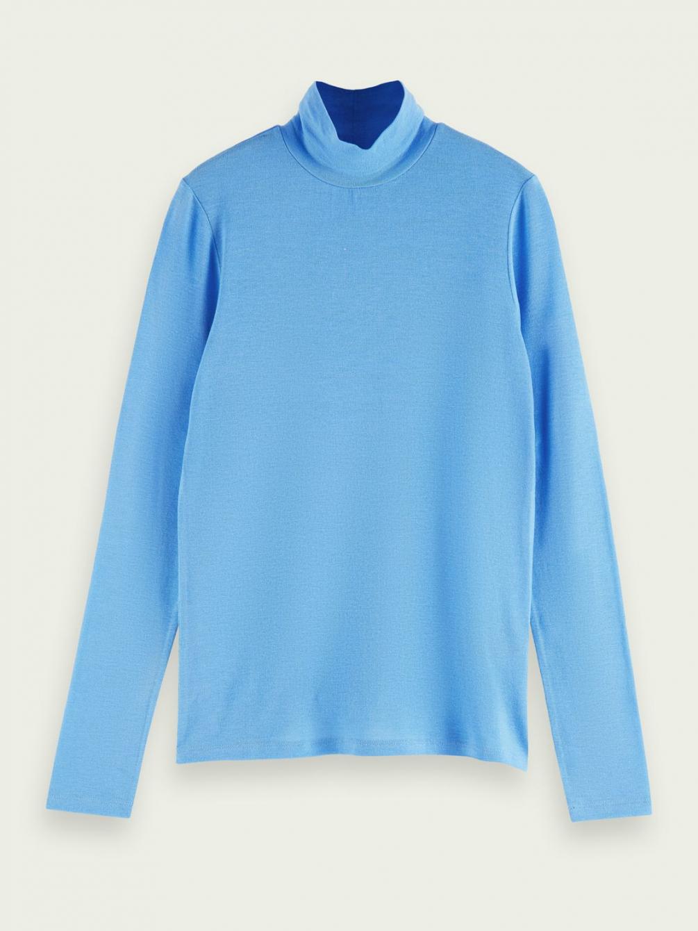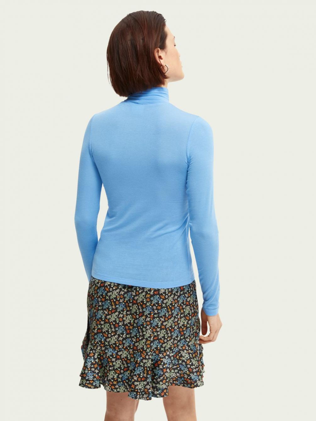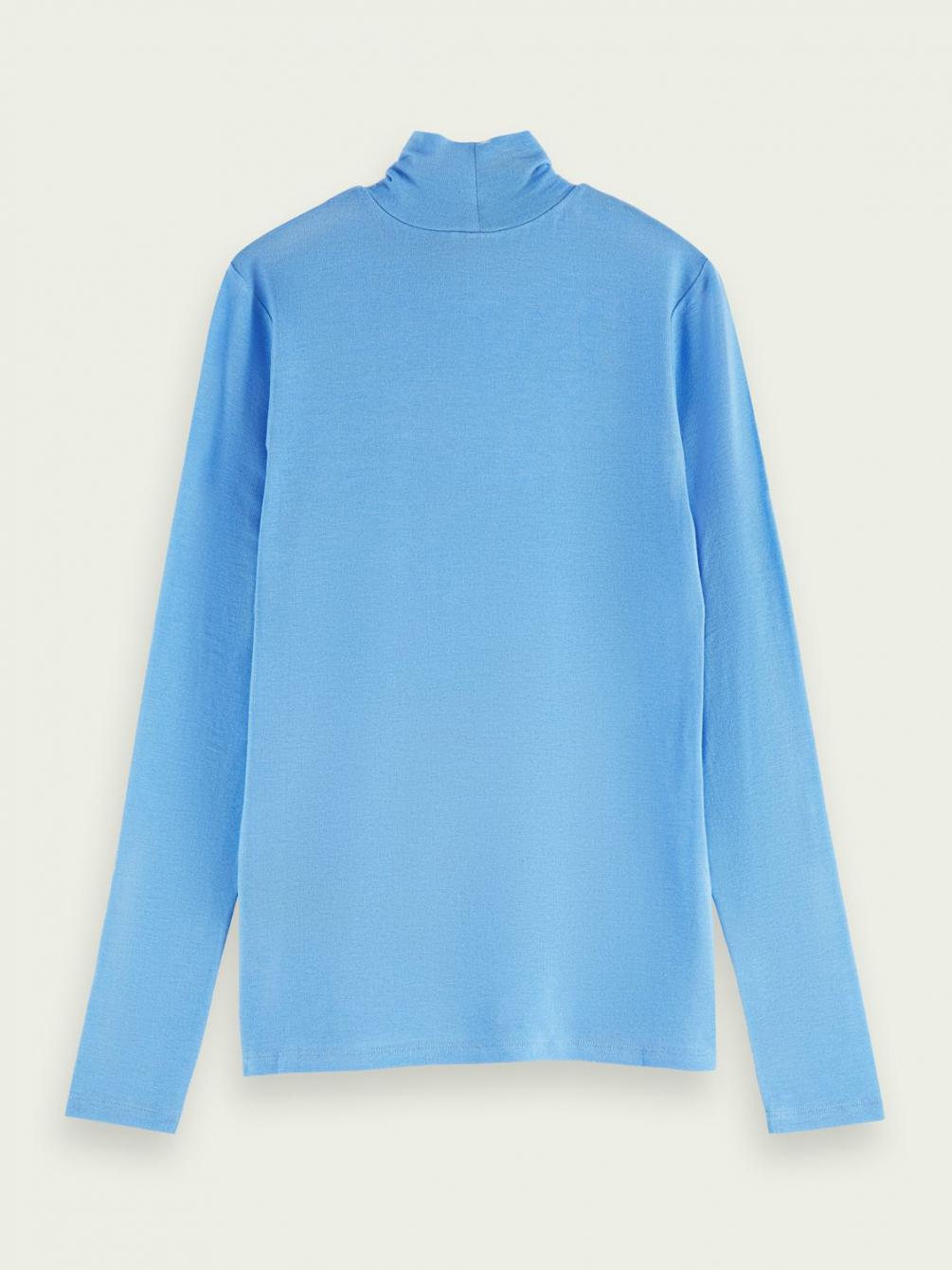 Tops & T-shirts | T-shirt met korte col en lange mouwen van Tencel™ Quilt Blue – Scotch & Soda Dames