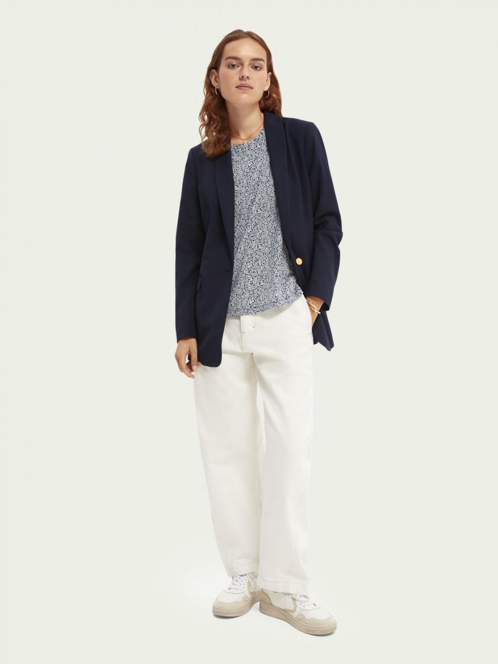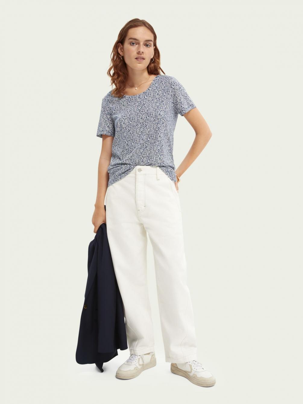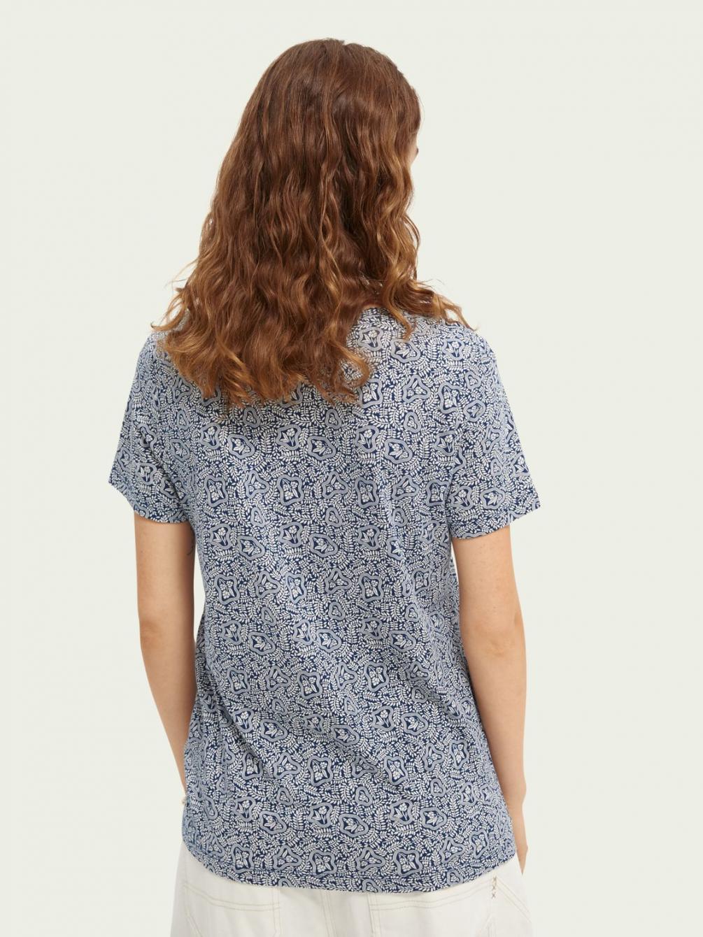 Ons T-shirt vrolijkt iedere outfit op. Het is gemaakt van een lichtgewicht, zijdezachte TENCEL™mix (50%). De all-over-print en het gestroomlijnde model maken het nog specialer. En al helemaal als je er een blazer overheen draagt.