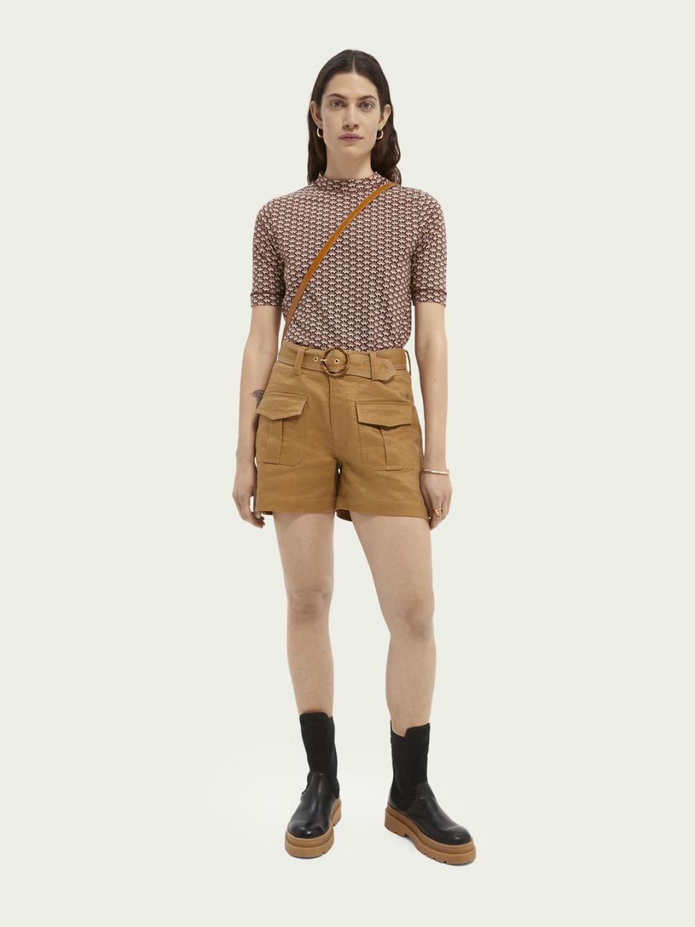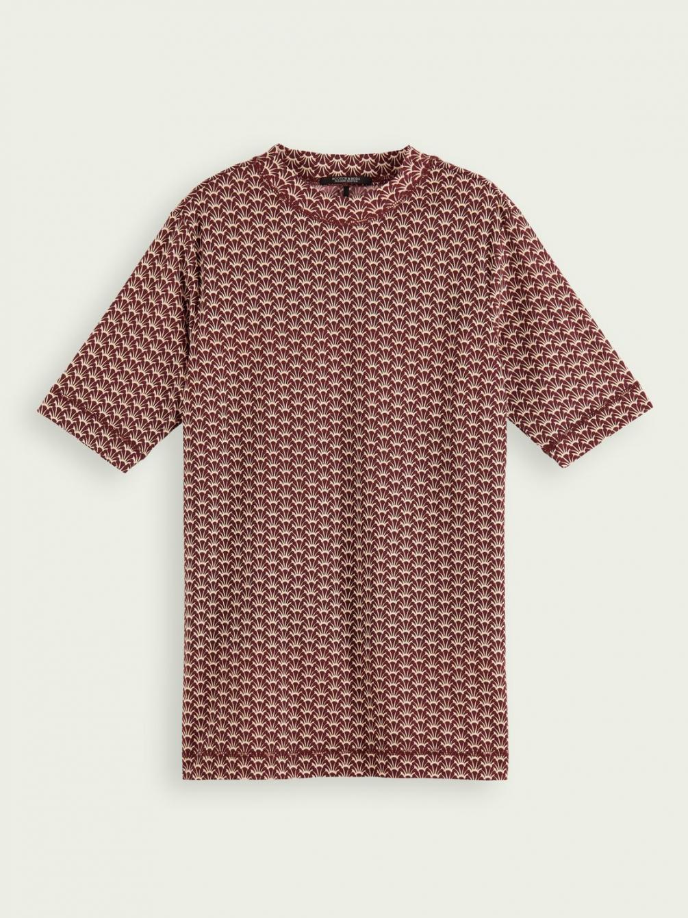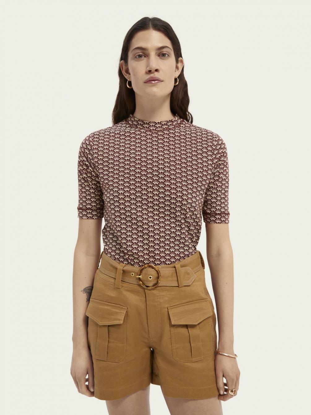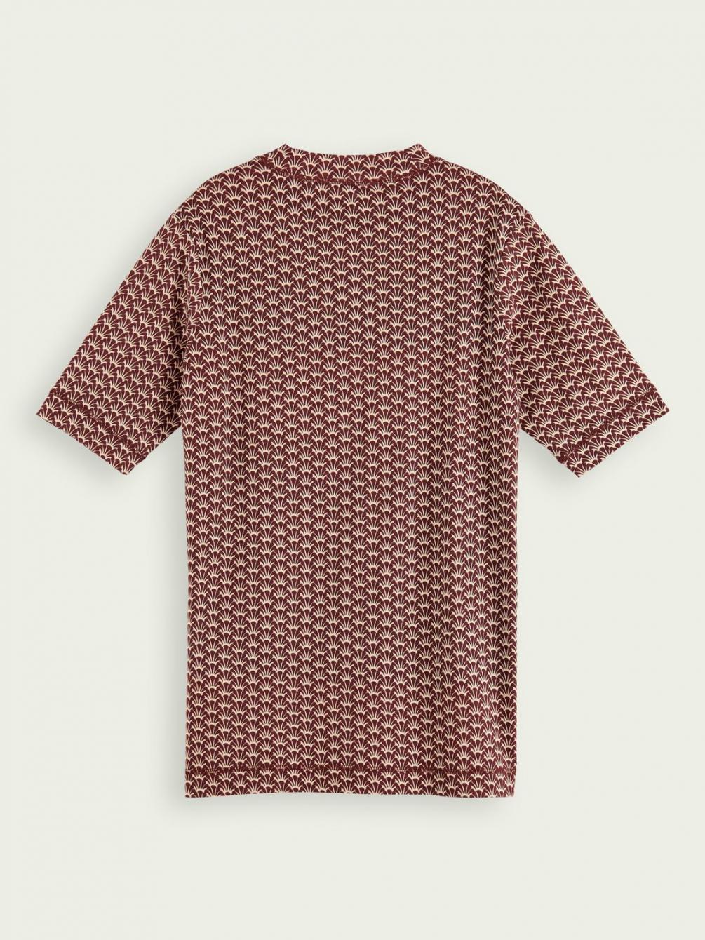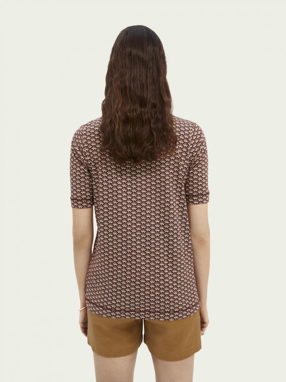 De unieke print van dit katoenen T-shirt met korte mouwen is door ons eigen team ontworpen. Dankzij het contrasterende effect van lichte en donkere tinten springt hij er echt uit. De opstaande kraag is een perfecte finishing touch en maakt dit T-shirt ook ideaal voor chiquere gelegenheden.