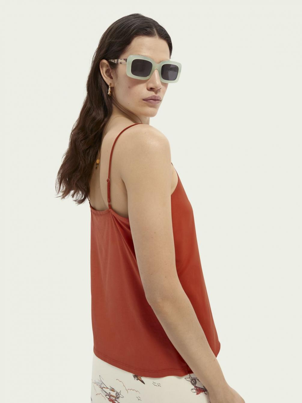 Dankzij zachte jersey en verschillende panelen is deze tanktop met V-hals de ultieme basislaag. Perfect om alleen te dragen, maar ook een goede keuze voor gelaagde looks. Matchen met een denim rok voor een stijlvolle zomerse look.