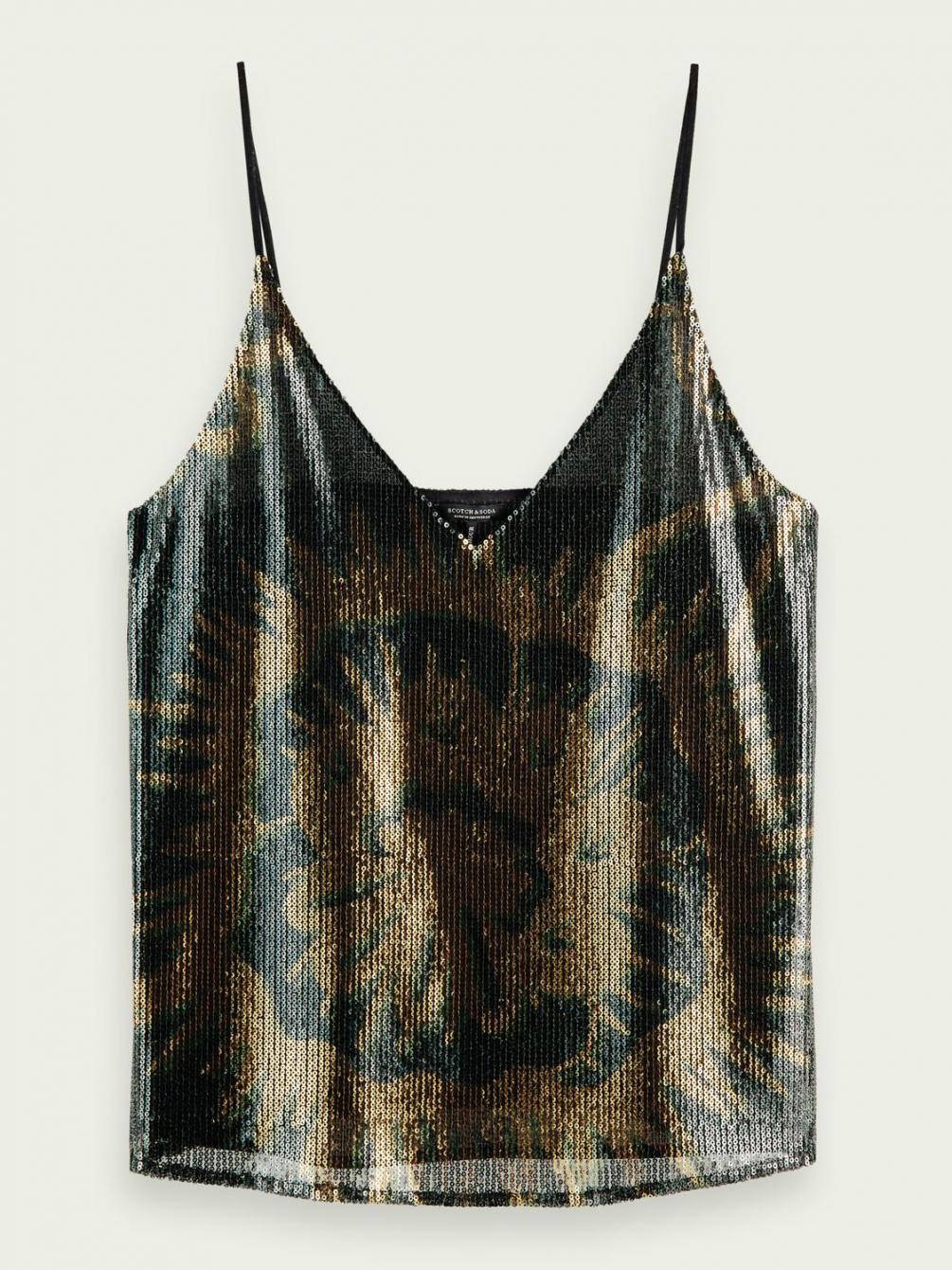 Op zoek naar de perfecte partytop? Je hebt hem gevonden. Deze top met V-hals is ontworpen met all-over pailletten die een print vormen. Hier maak je zeker een statement mee.