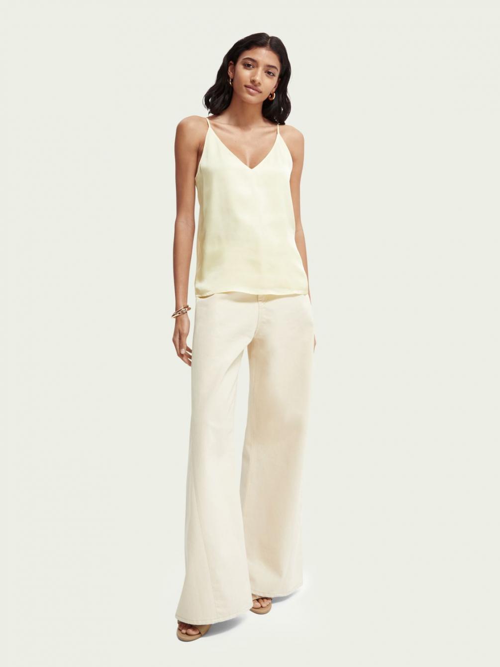 Deze top met V-hals is gemaakt van zachte katoenen jersey. Dit item speelt met texturen door de combinatie van een geweven voorkant en gebreide achterkant. Gemaakt met biologisch katoen: niet genetisch gemodificeerde zaadjes worden gezaaid in grond die vrij is van pesticiden en kunstmest, met minder waterverbruik en geteeld met gebruik van gewasrotatie, wat beter is voor de gezondheid van de bodem.