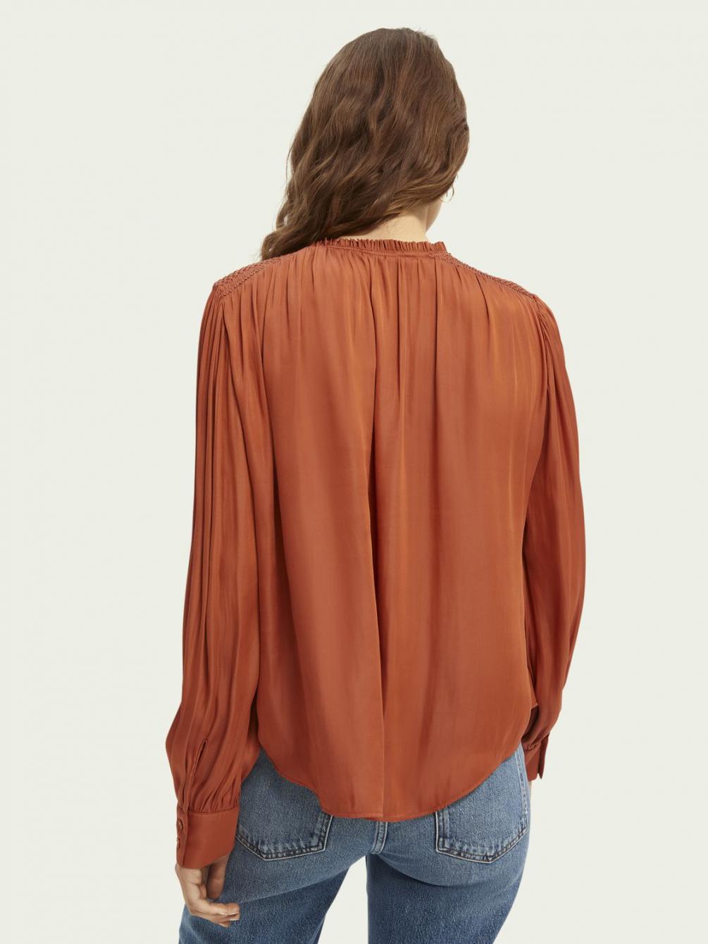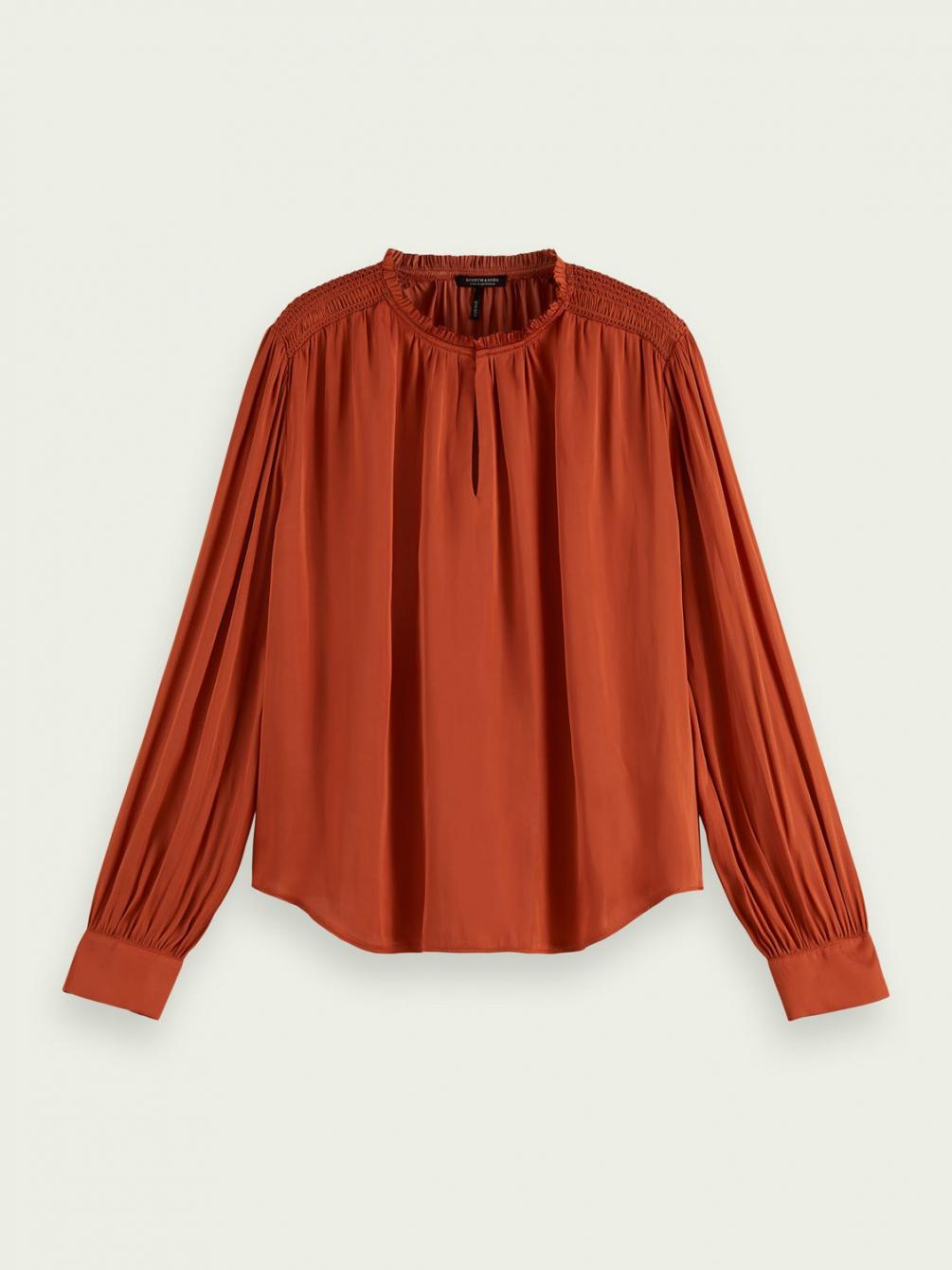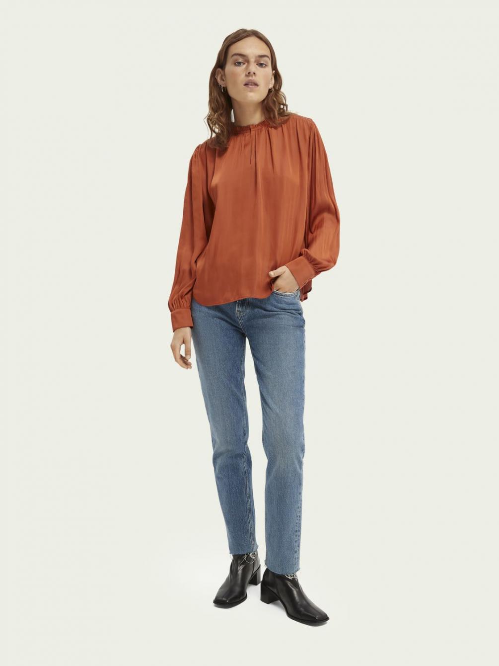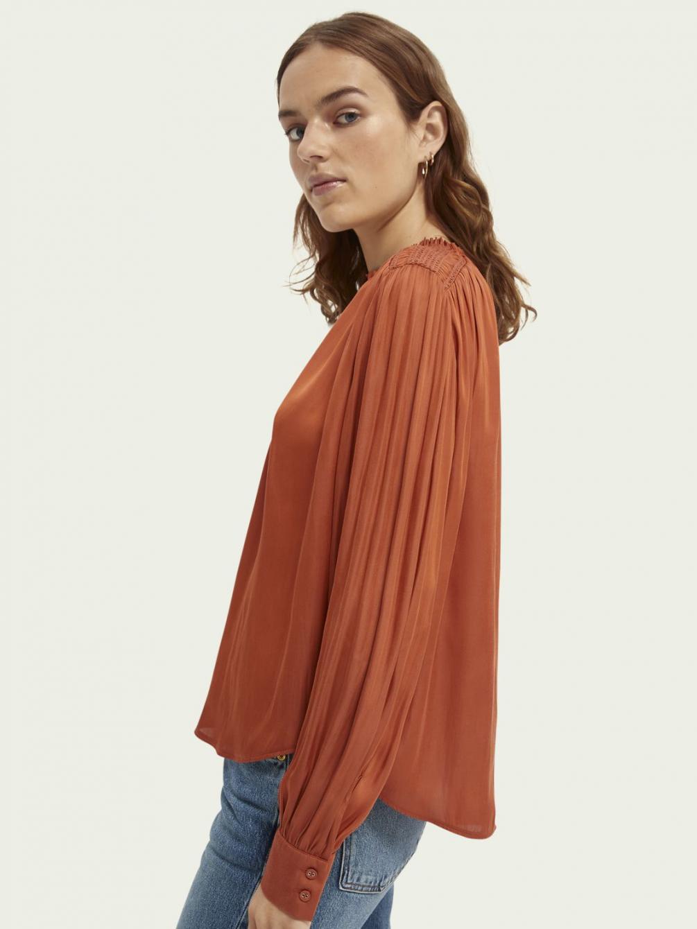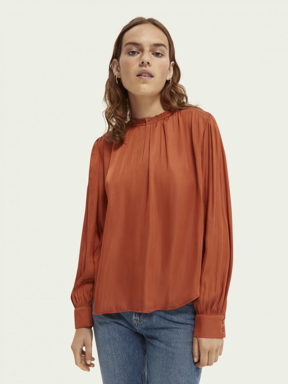 Onze zijdezachte top met ballonmouwen is perfect om een subtiel statement toe te voegen aan je garderobe. Dankzij de lage col en soepelvallende stof is deze top een echte blikvanger.