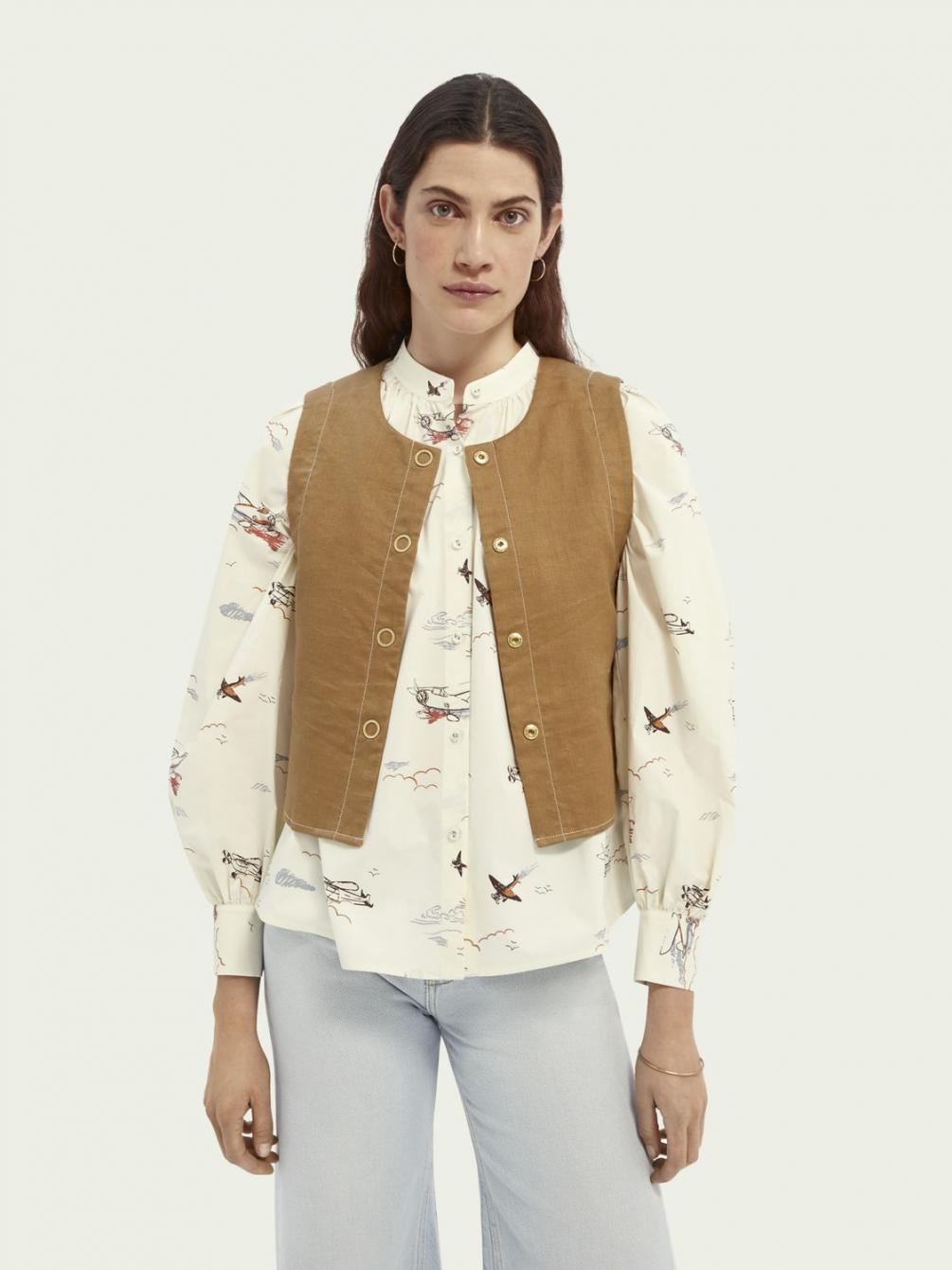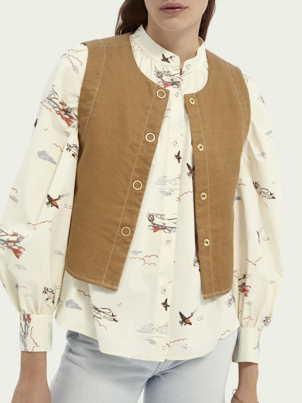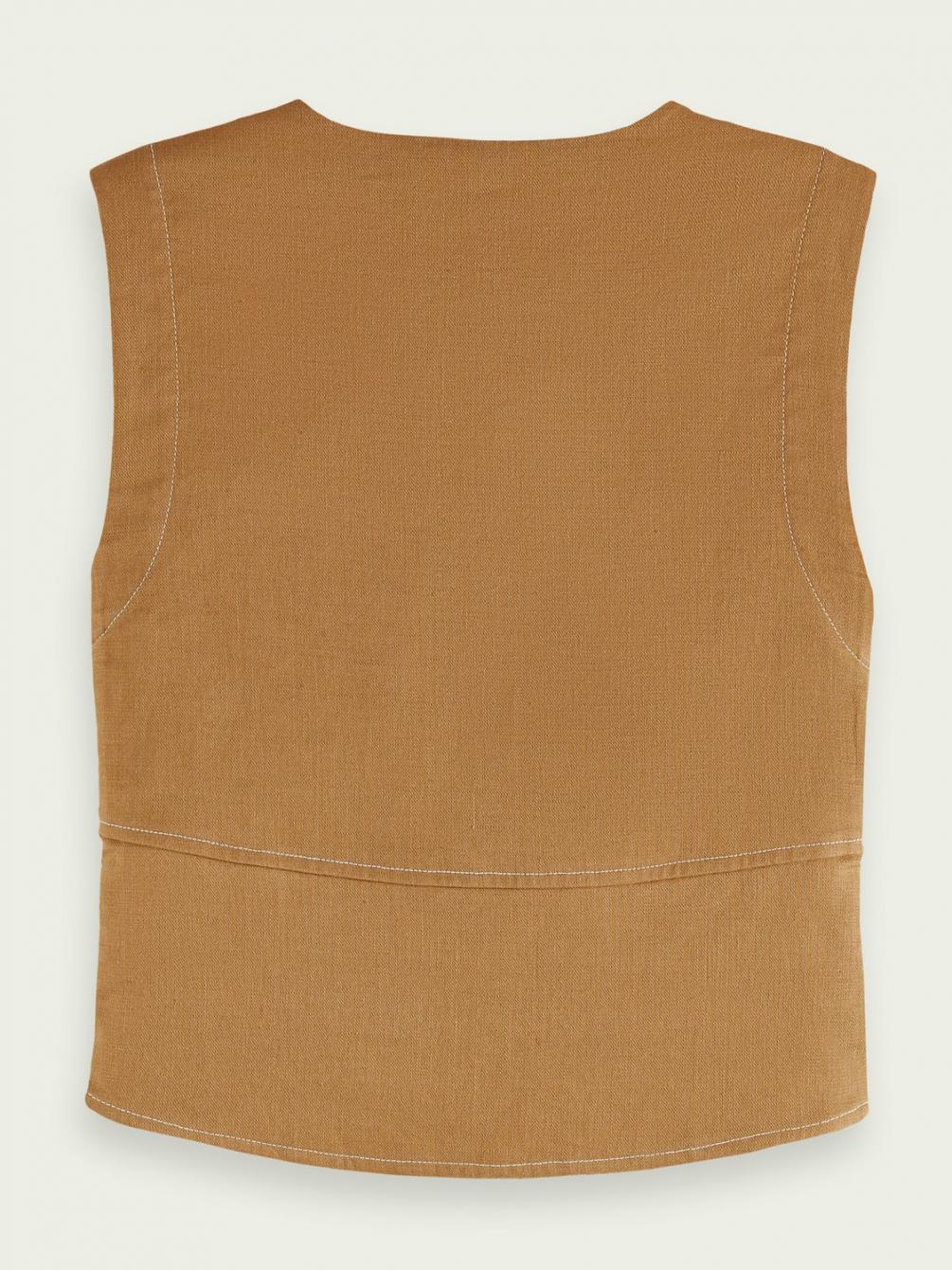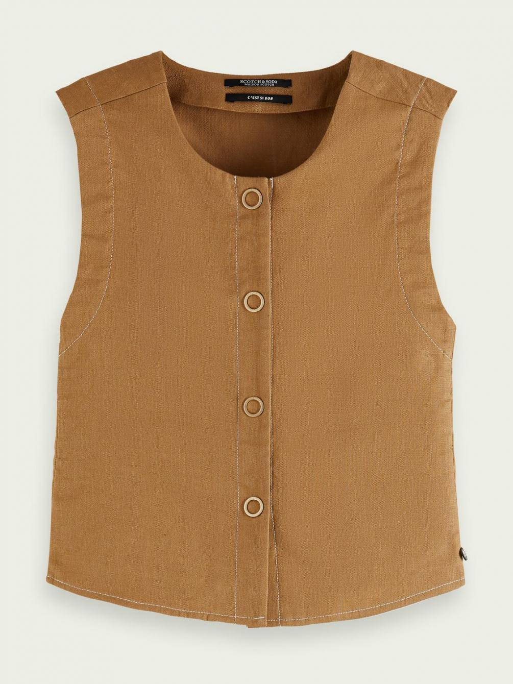 Deze top in coole utility-stijl is gemaakt van een zachte en luchtige mix van katoen en linnen. De mouwloze top heeft een ronde hals en een knoopsluiting. Draag hem als extra laag over een frisse, witte blouse voor een trendy look die zeker zal opvallen.