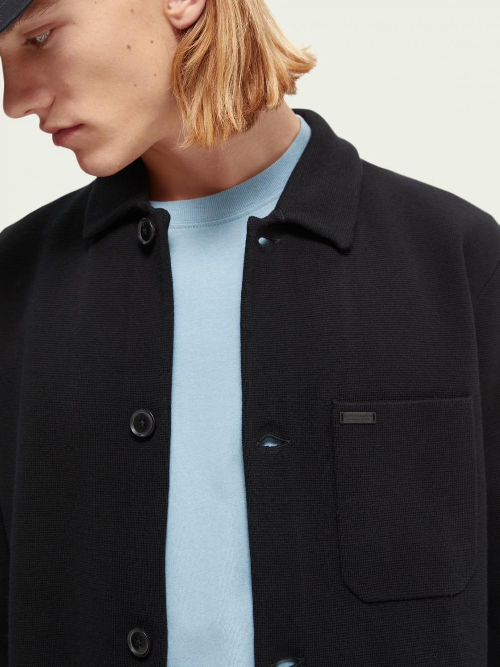 Ons nieuwste jack is gebreid van een katoenmix en perfect voor gelaagde looks. De zakken en knoopsluiting geven het een utility-uitstraling en een relaxte look.