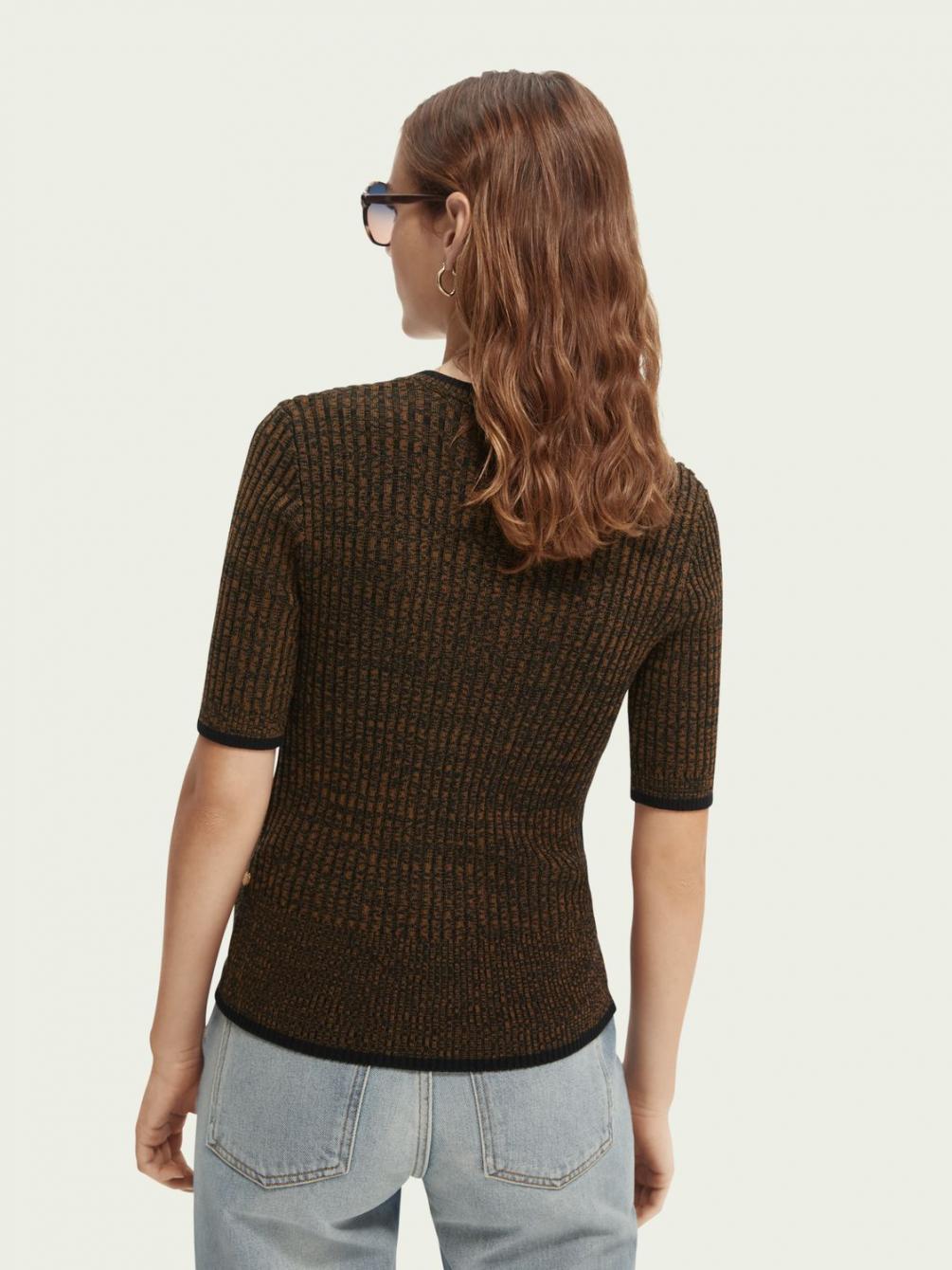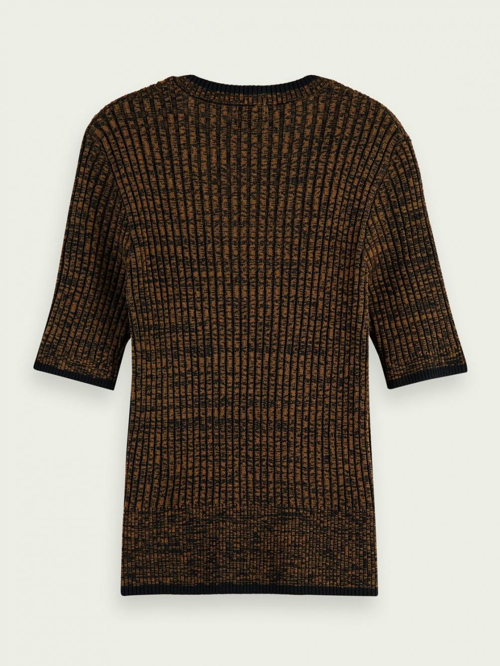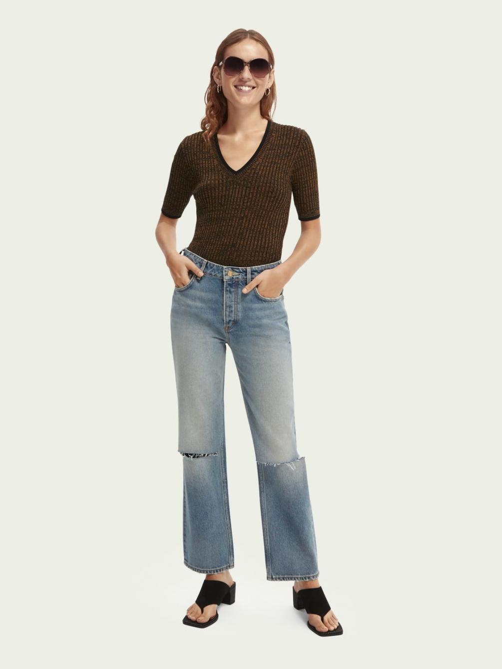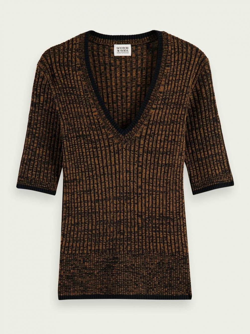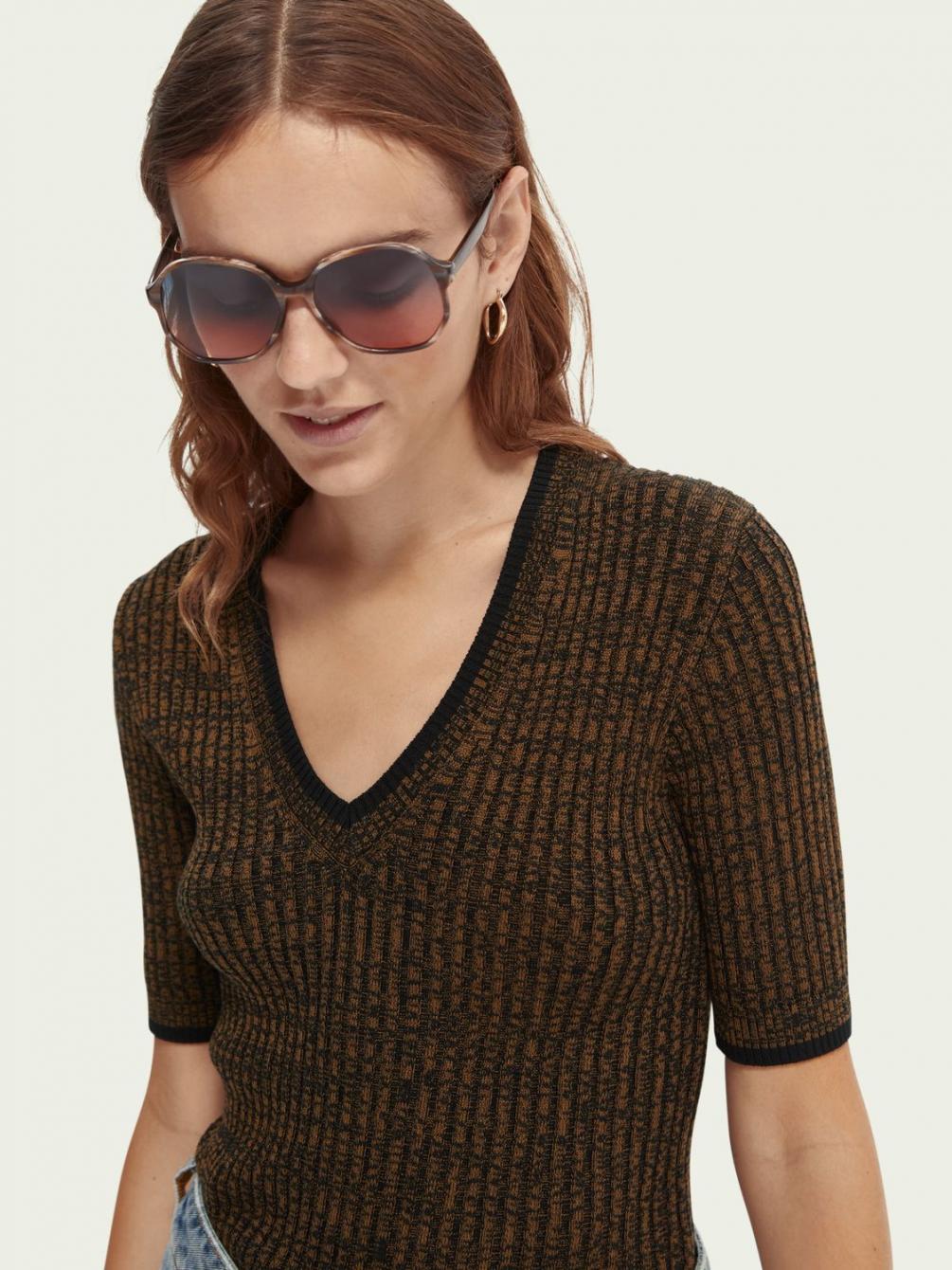 Truien & vesten | Gemêleerde top met V-hals Olive Brown Melange – Scotch & Soda Dames