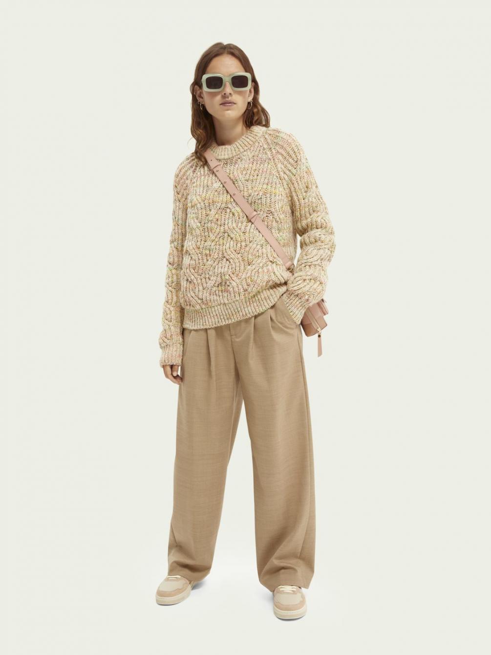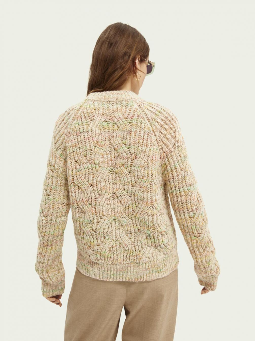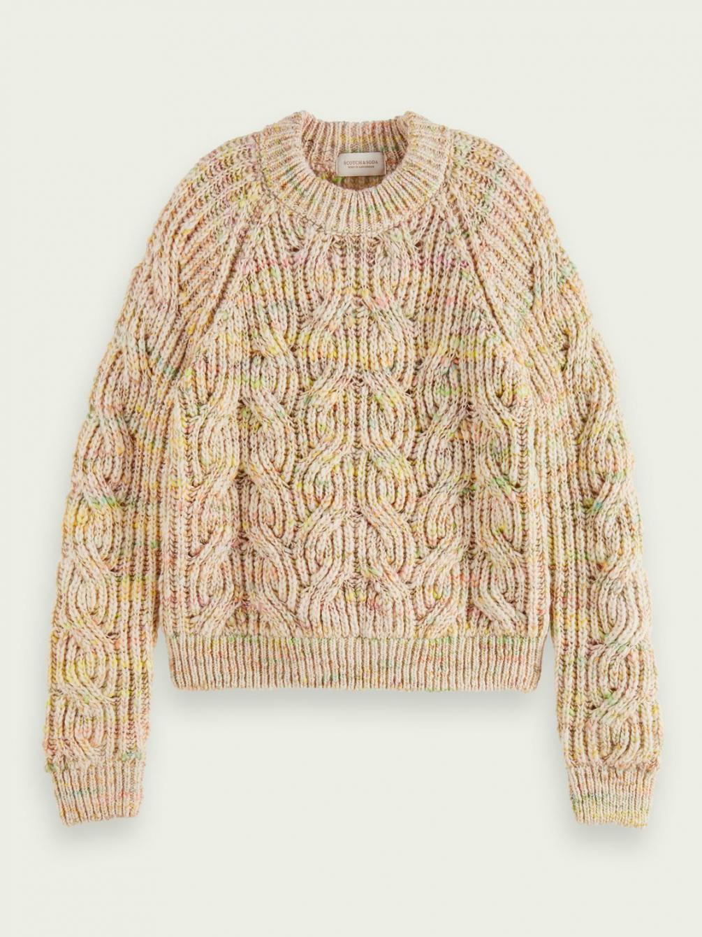 Onze prachtige nieuwe kabeltrui heeft precies genoeg gewicht om je heerlijk warm te houden. De ronde hals maakt het alleen maar comfortabeler, terwijl het subtiele kleureffect nog een extra stijlaccent toevoegt. Draag er een zijden midirok onder voor een textuurclash.