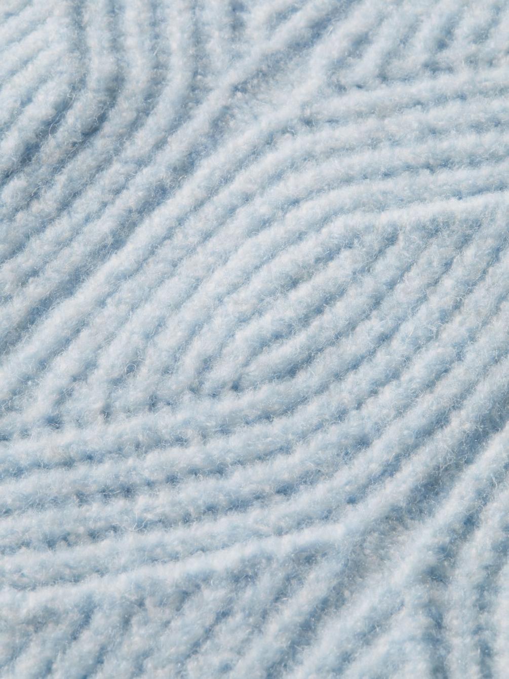 Op frisse dagen met een beetje zonneschijn houdt onze kabeltrui met hoge, ronde hals je warm. Dit zachte item in een lichtblauwe kleur is de trui van je dromen.