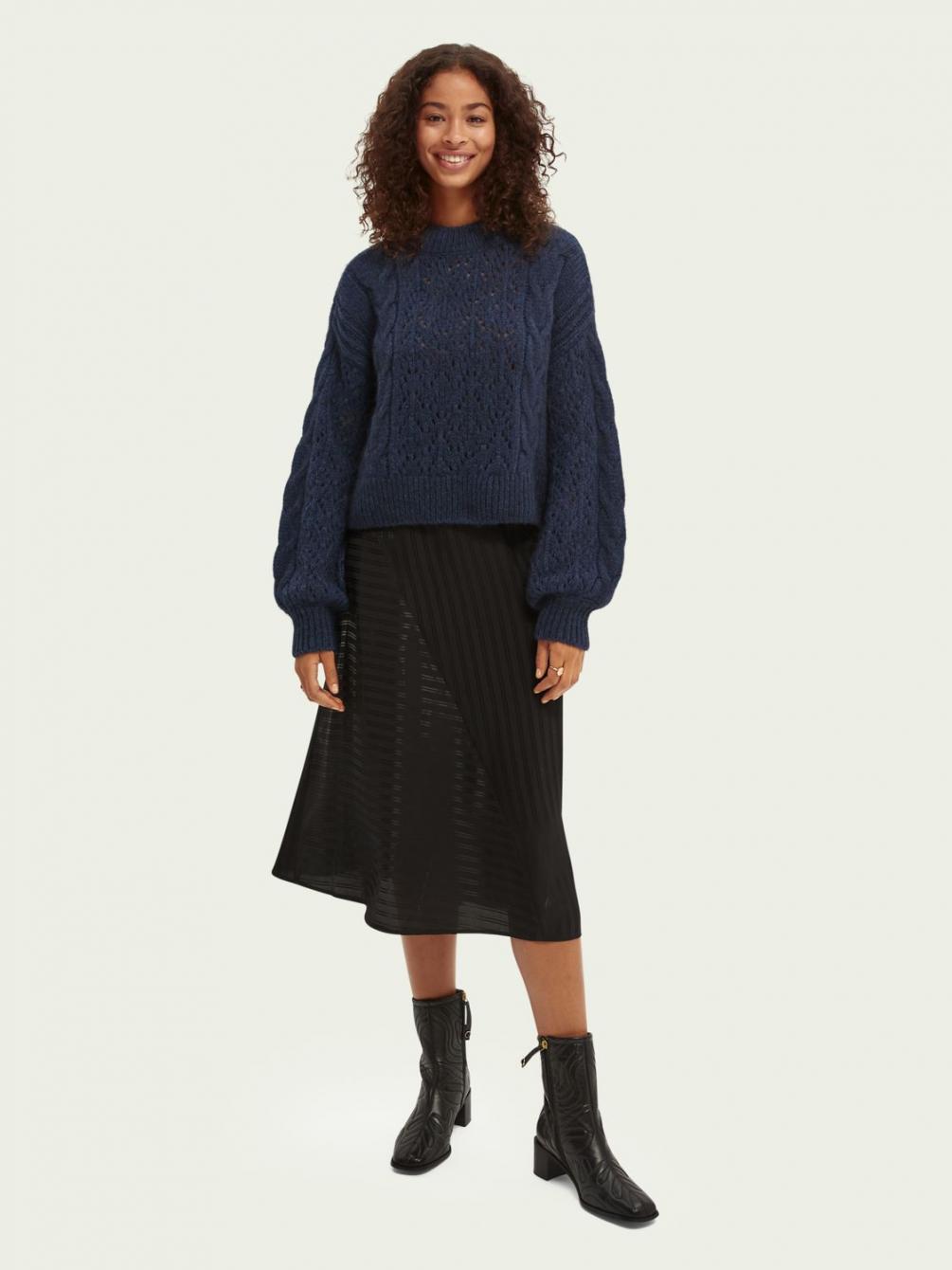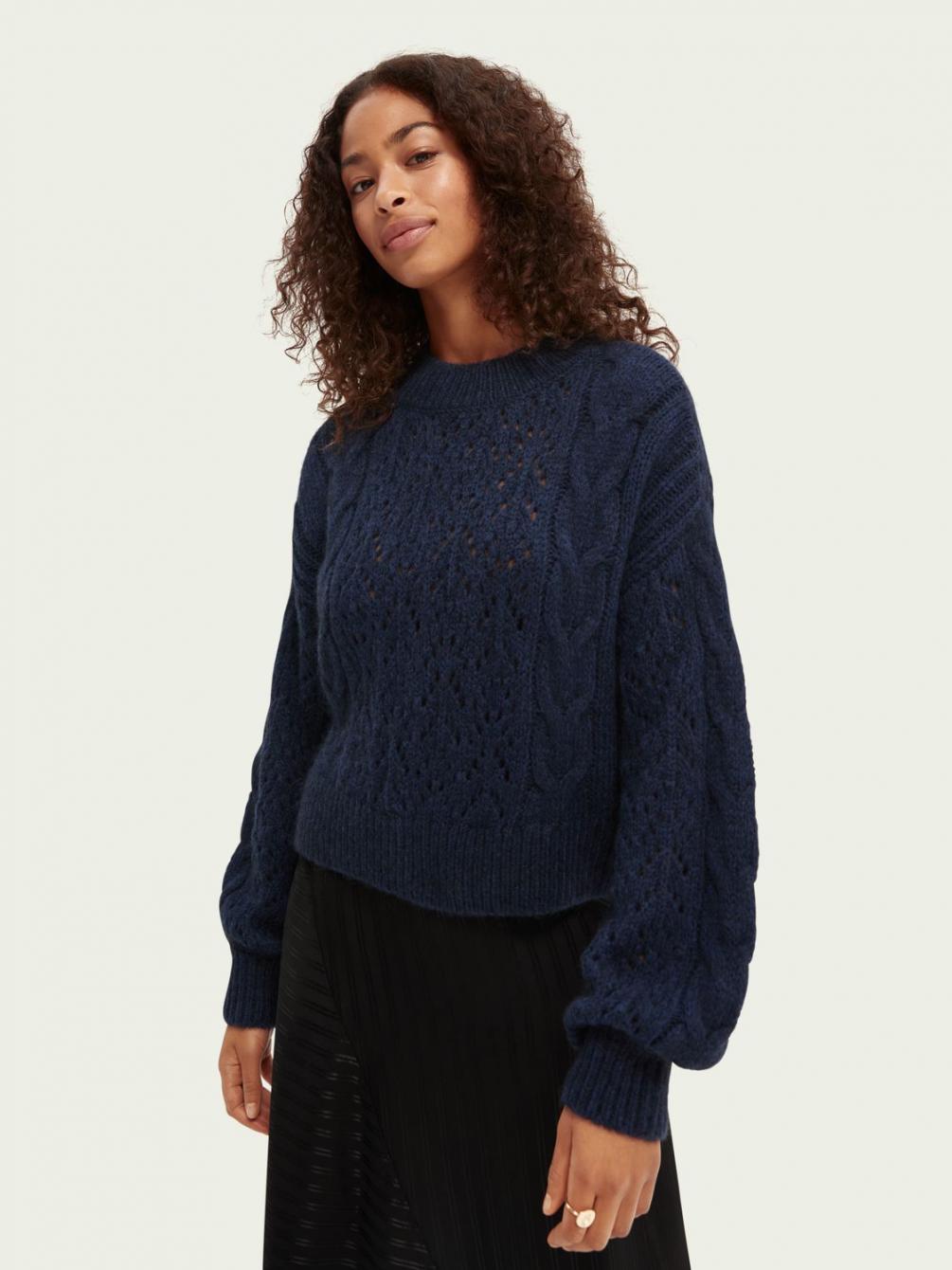 Onze nieuwste sweater combineert een grofgebreid kabelpatroon met een relaxed fit voor ultiem comfort. Maar het oog wil natuurlijk ook wat en daar zorgen de subtiele pofmouwen voor….