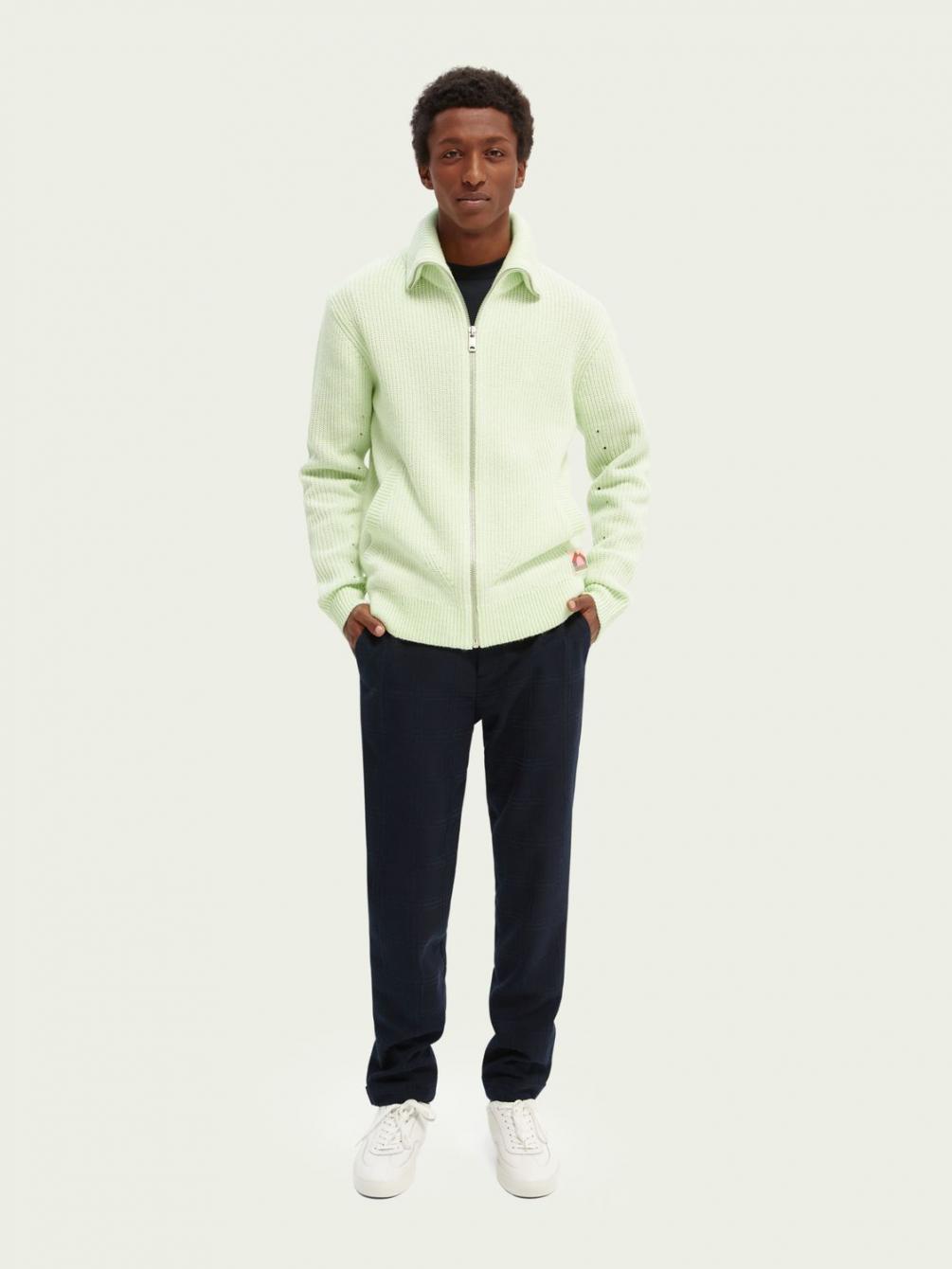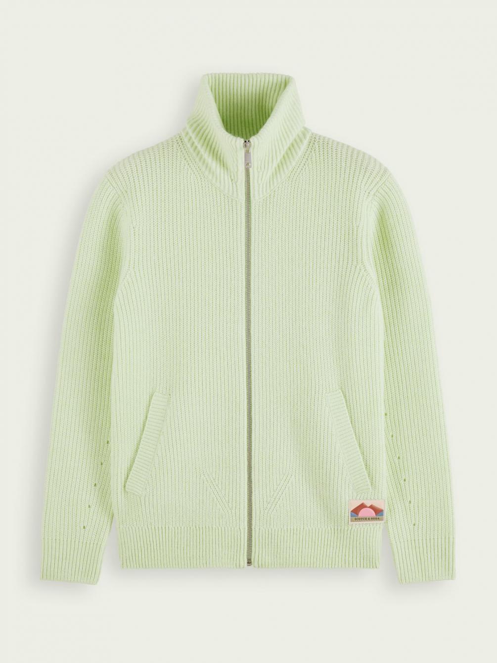Maak ruimte vrij in je garderobe voor ons ribgebreide vest. Deze lichtgewicht sweater heeft een ritssluiting en een zachtgroene kleur, perfect om je alledaagse looks mee op te fleuren….