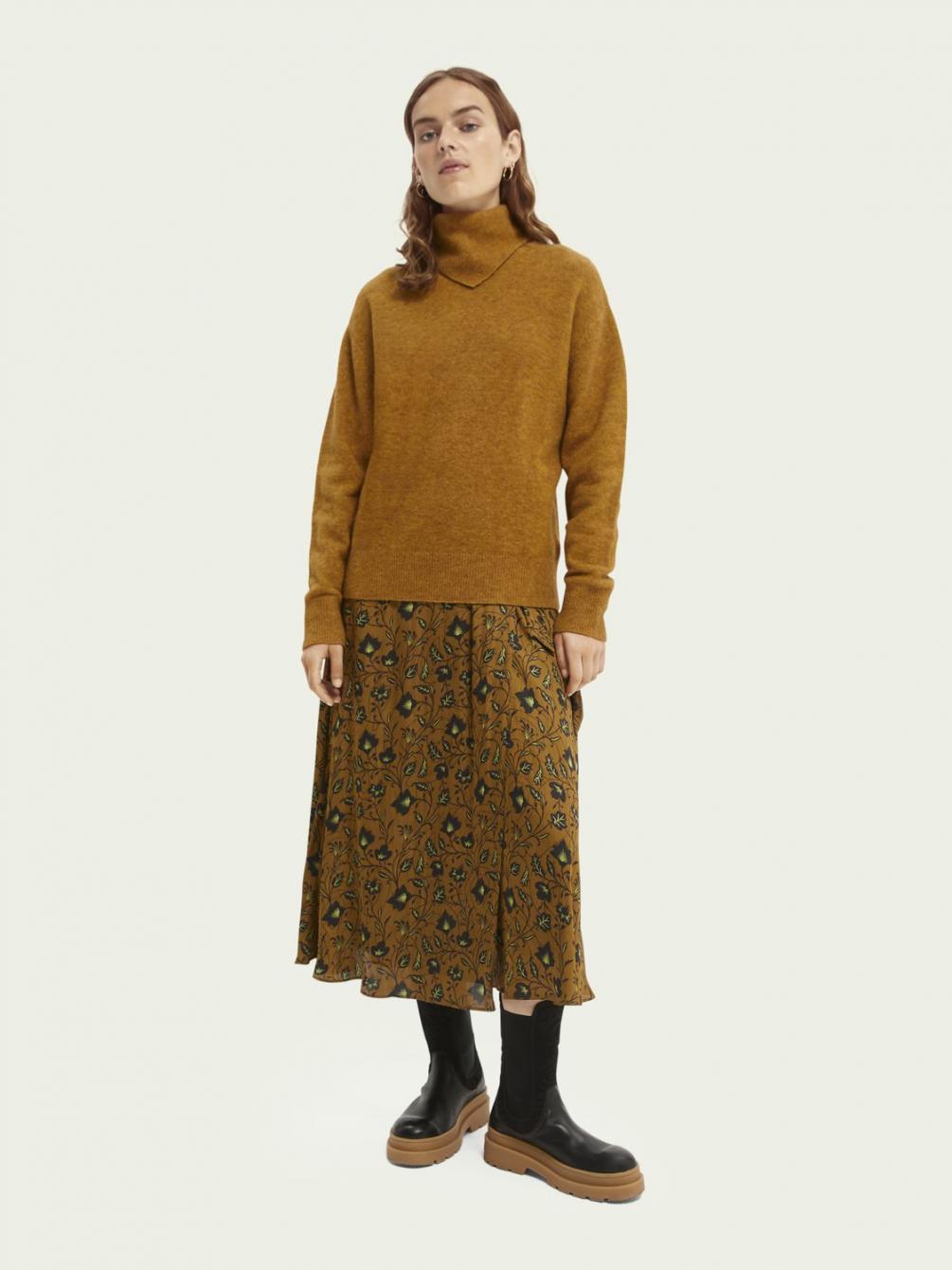 Who doesn’t love a soft knit sweater, especially when it has a unique scarf-detailed neckline? Bundle up for the chillier season in one of the two colourways – or get them both for endless warm outfit combinations.