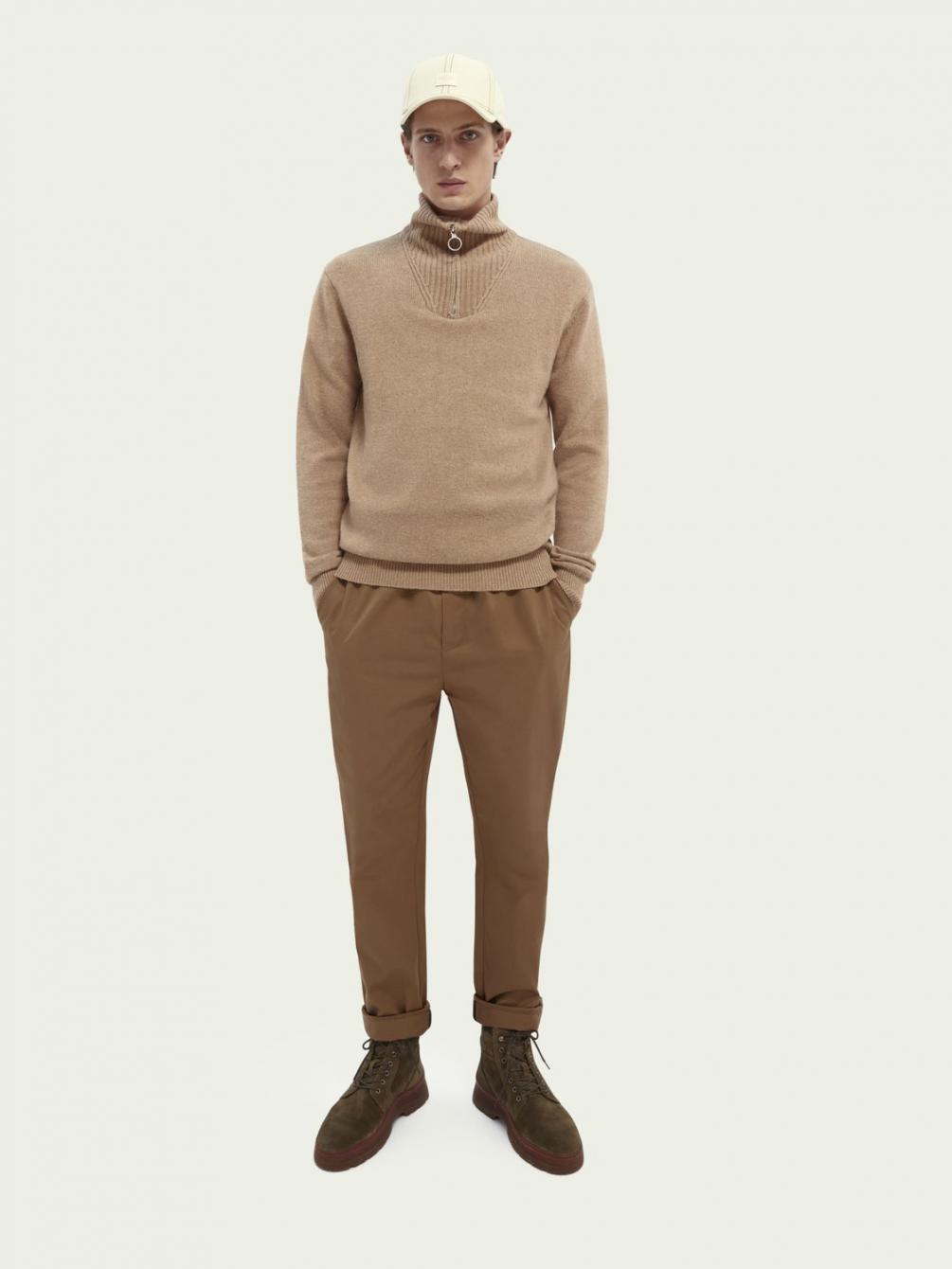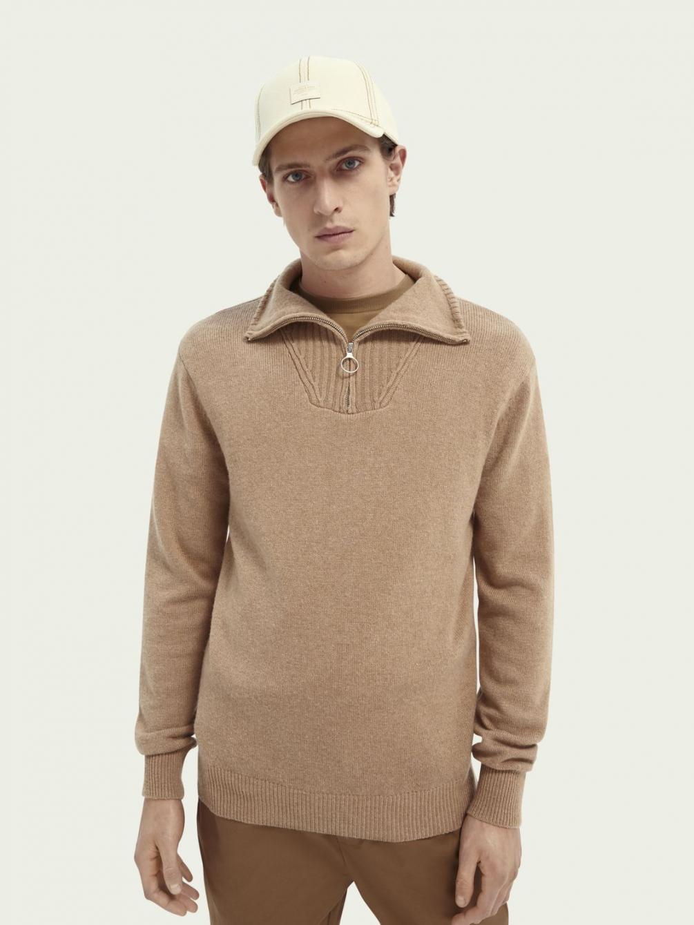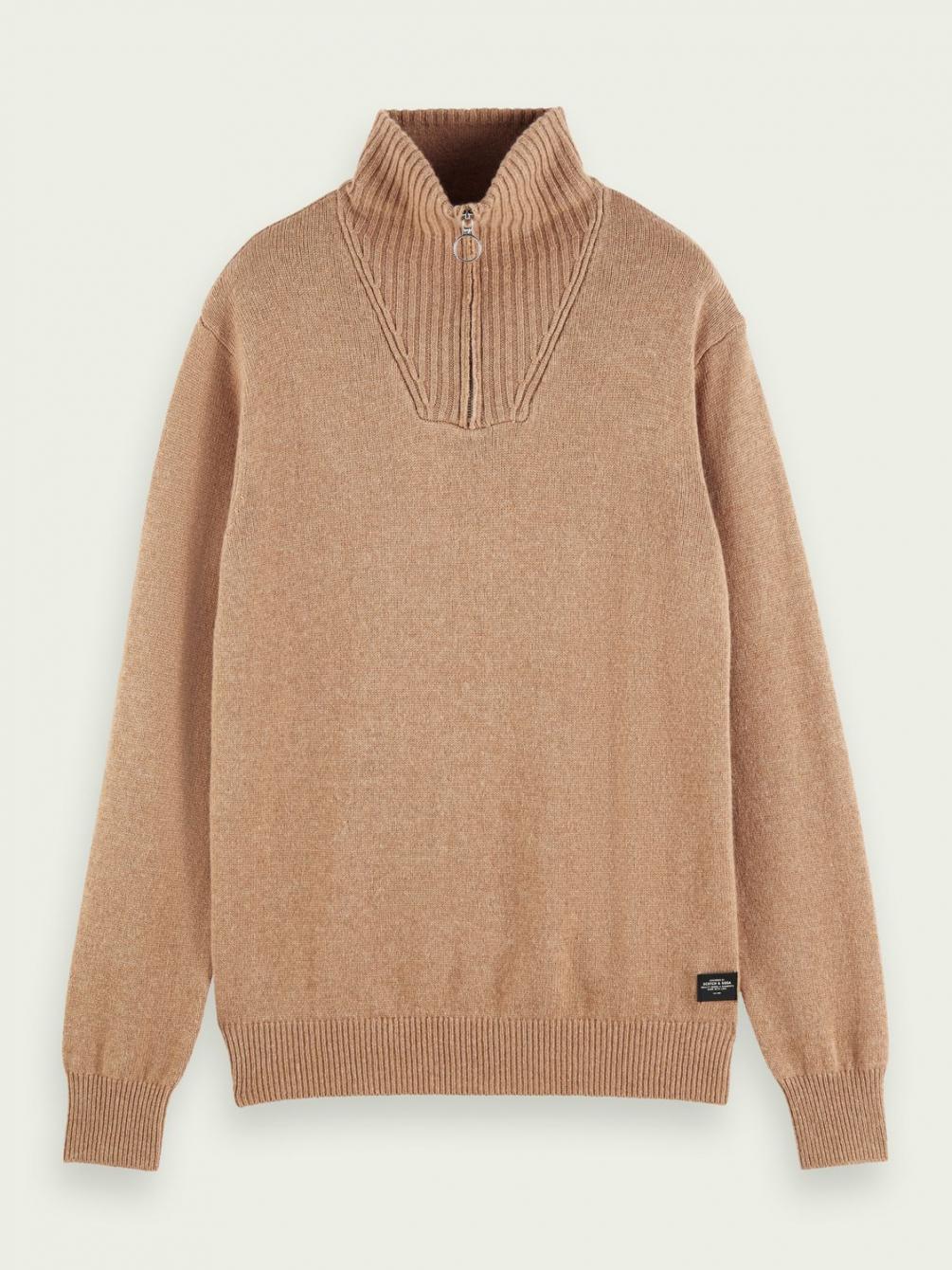Truien & vesten | Sweater met halve rits van een wolmix Camel Melange – Scotch & Soda Heren