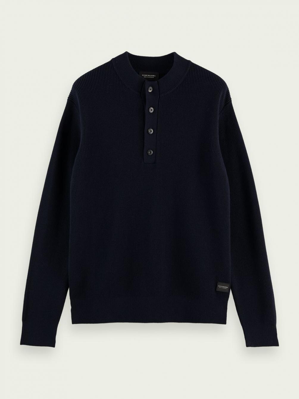 Deze ribgebreide sweater met een lage col met knopen is gemaakt voor de moderne garderobe. Dit item geeft iedere alledaagse outfit meteen een boost. Gemaakt met biologisch katoen: niet genetisch gemodificeerde zaadjes worden gezaaid in grond die vrij is van pesticiden en kunstmest, minder waterverbruik en geteeld met gebruik van gewasrotatie, wat beter is voor de gezondheid van de bodem.