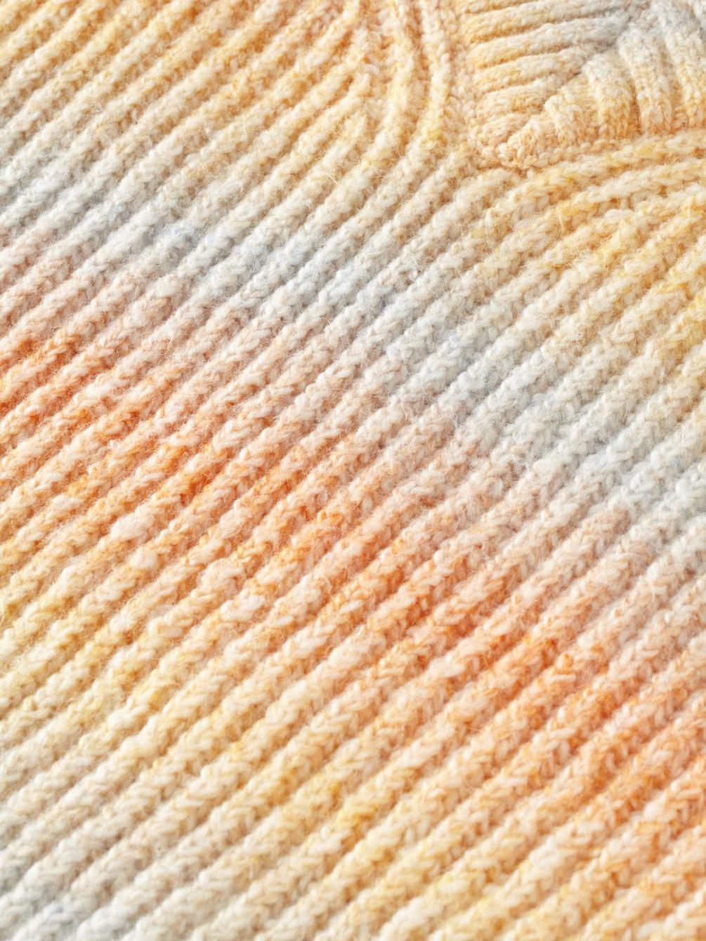 De zachte pasteltinten van deze speelse sweater vloeien prachtig in elkaar over en hij houdt je ook heerlijk warm. Naast de kleurovergang is deze look perfect afgewerkt met geribbelde boorden en een V-hals.