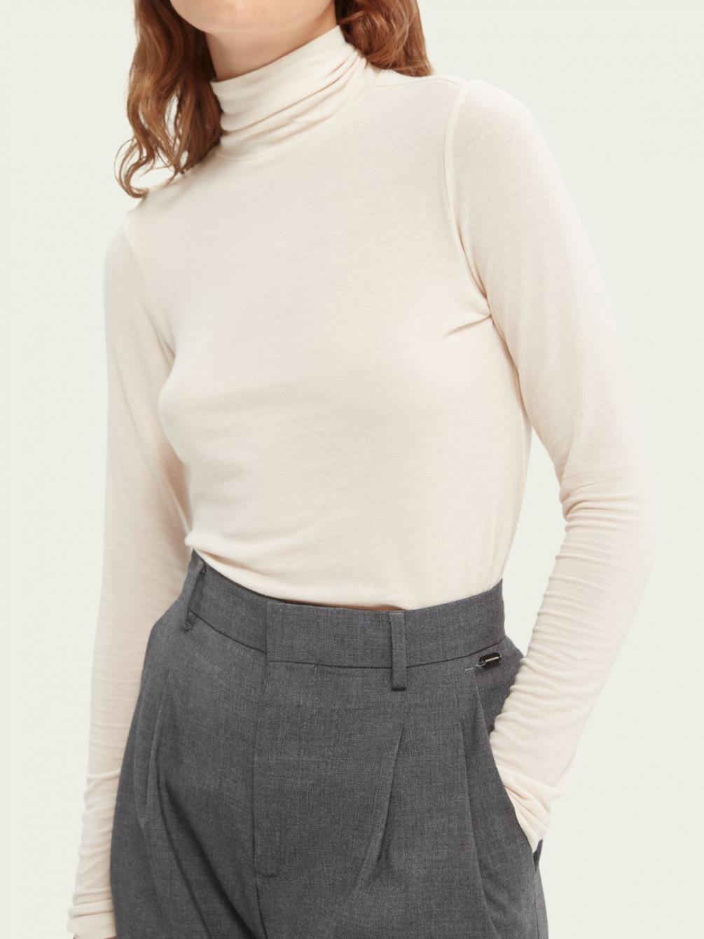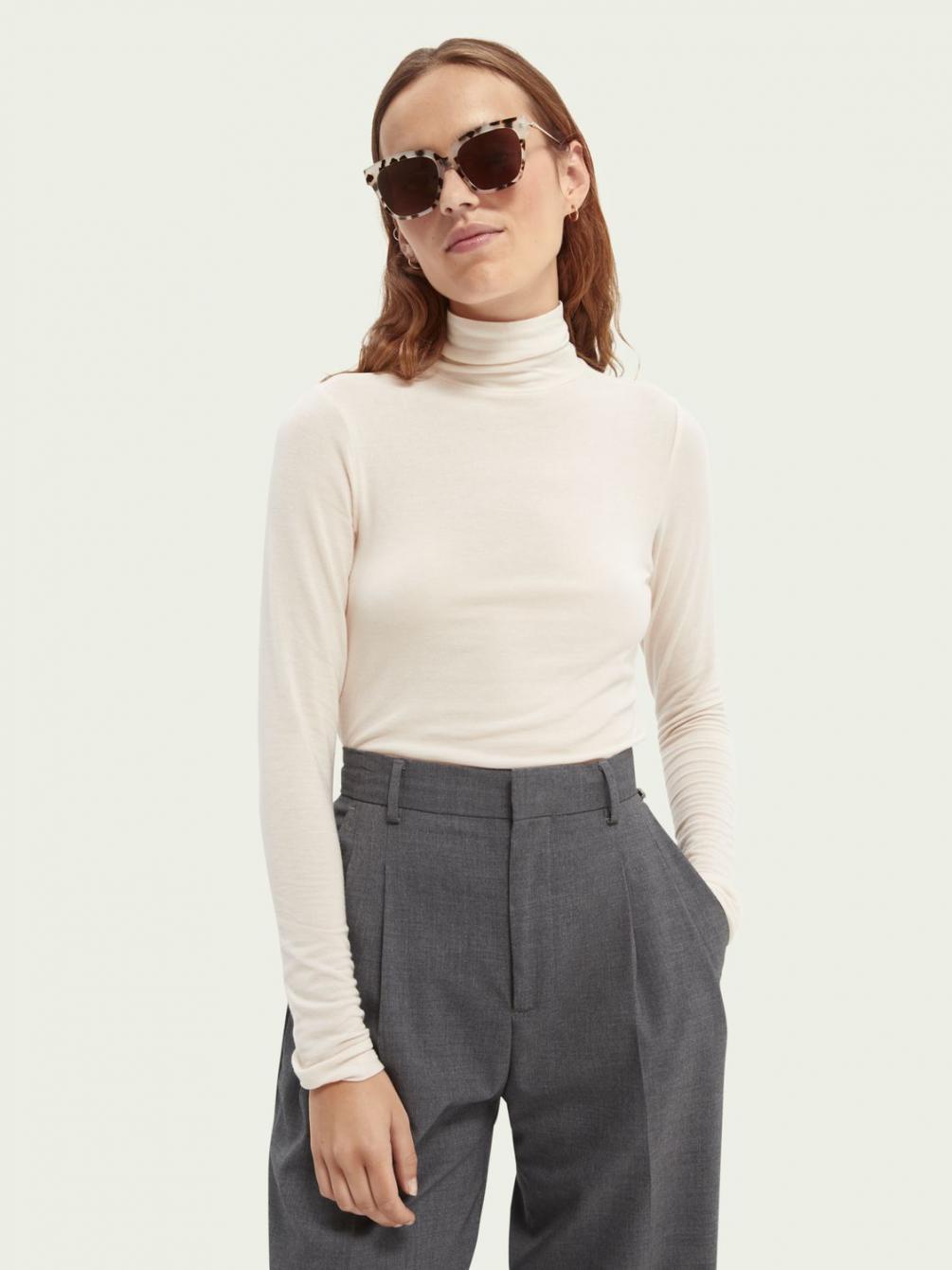 Ons T-shirt met lage col is gemaakt voor die dagen dat je wel een extra laagje kunt gebruiken. Dankzij de lange mouwen en tailored fit is het ultracomfortabel en gemakkelijk gelaagd te dragen.
